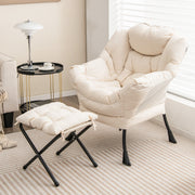 Poltrona Reclinável com Otomana Cadeira de Lazer com Almofada Apoio para Pés Apoia-Braços Sofá para Sala Quarto 75 x 81 x 94,5 cm Bege