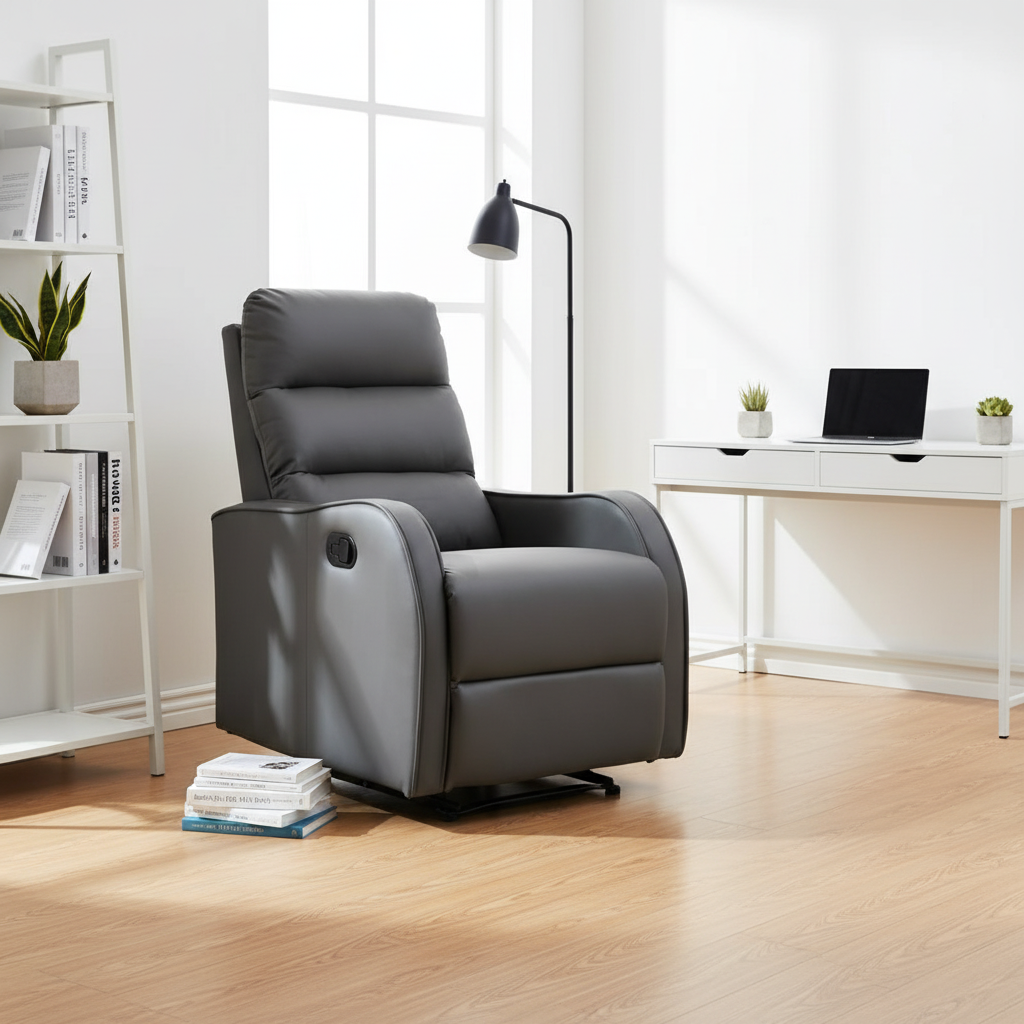 Esta poltrona relax em cinzento escuro combina conforto com estilo, sendo o complemento ideal para qualquer ambiente da sua casa.
