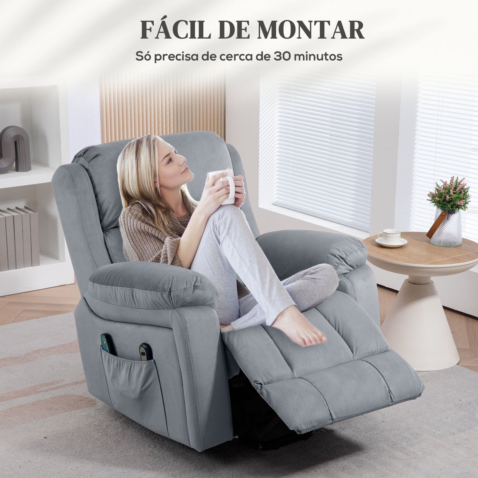 A Poltrona Relax Cinzenta proporciona conforto excepcional com características como massagem, aquecimento e elevação, tornando-a perfeita para o seu espaço de relaxamento em casa.