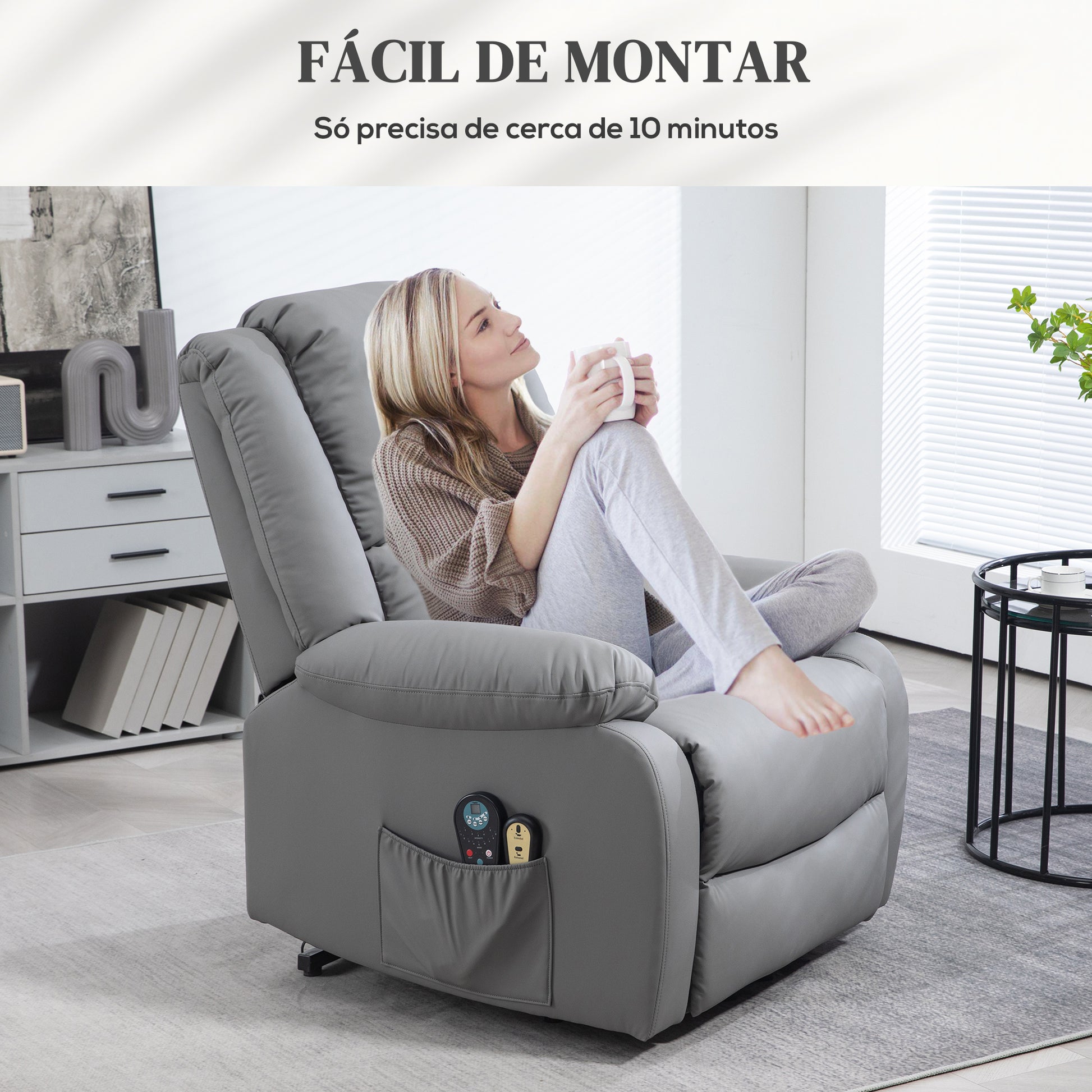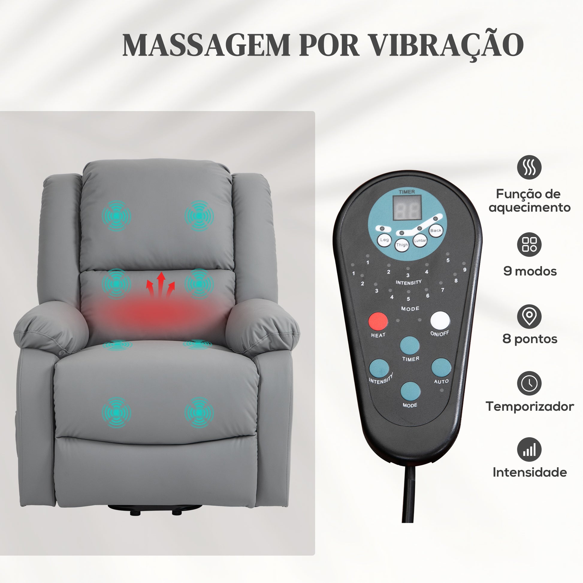 Poltrona Relax com 8 Pontos de Massagem - Cinzento (89x93x105 cm)