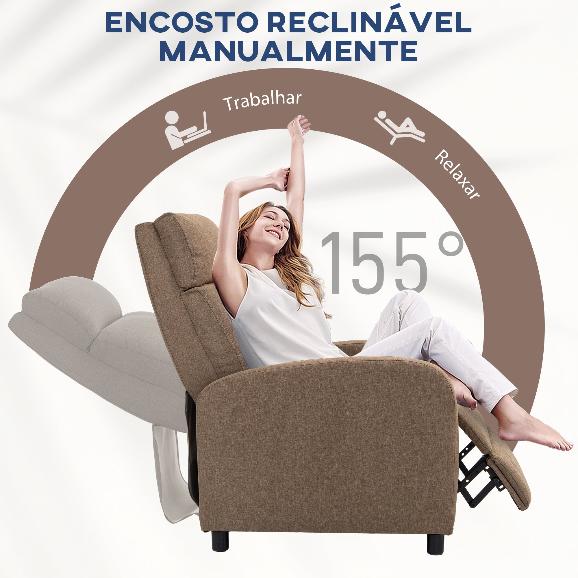 Poltrona Relax Reclinável – 67x87x98 cm – Cor Marrom – Tecido de linho