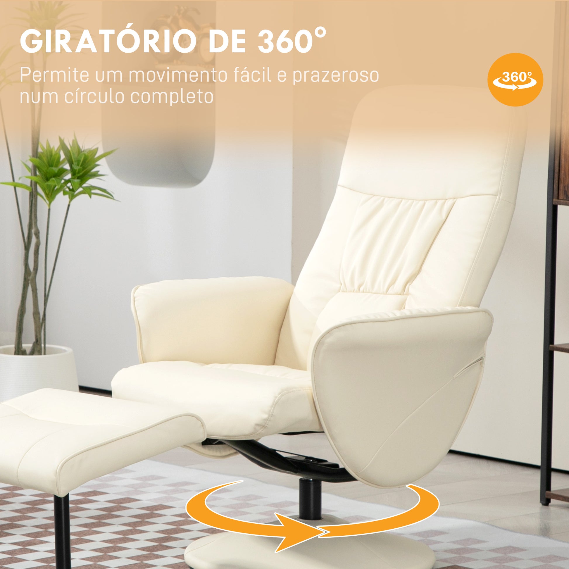 Desfrute de máximo conforto com esta poltrona relax reclinável em cor creme. Com encosto ajustável até 145° e apoio para os pés, é perfeita para relaxar na sala de estar, no dormitório ou no escritório.