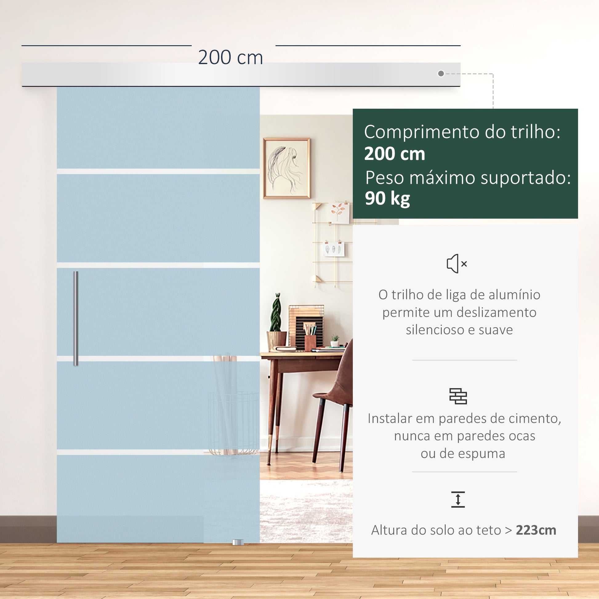 A porta de vidro possui rodas de borracha com rolamentos que garantem um movimento suave ao abrir e fechar. Além disso, o vidro translúcido permite a entrada de luz sem comprometer a privacidade. Com todos os acessórios incluídos para facilitar a montagem, esta porta de correr é a escolha perfeita para criar espaços luminosos e sofisticados.