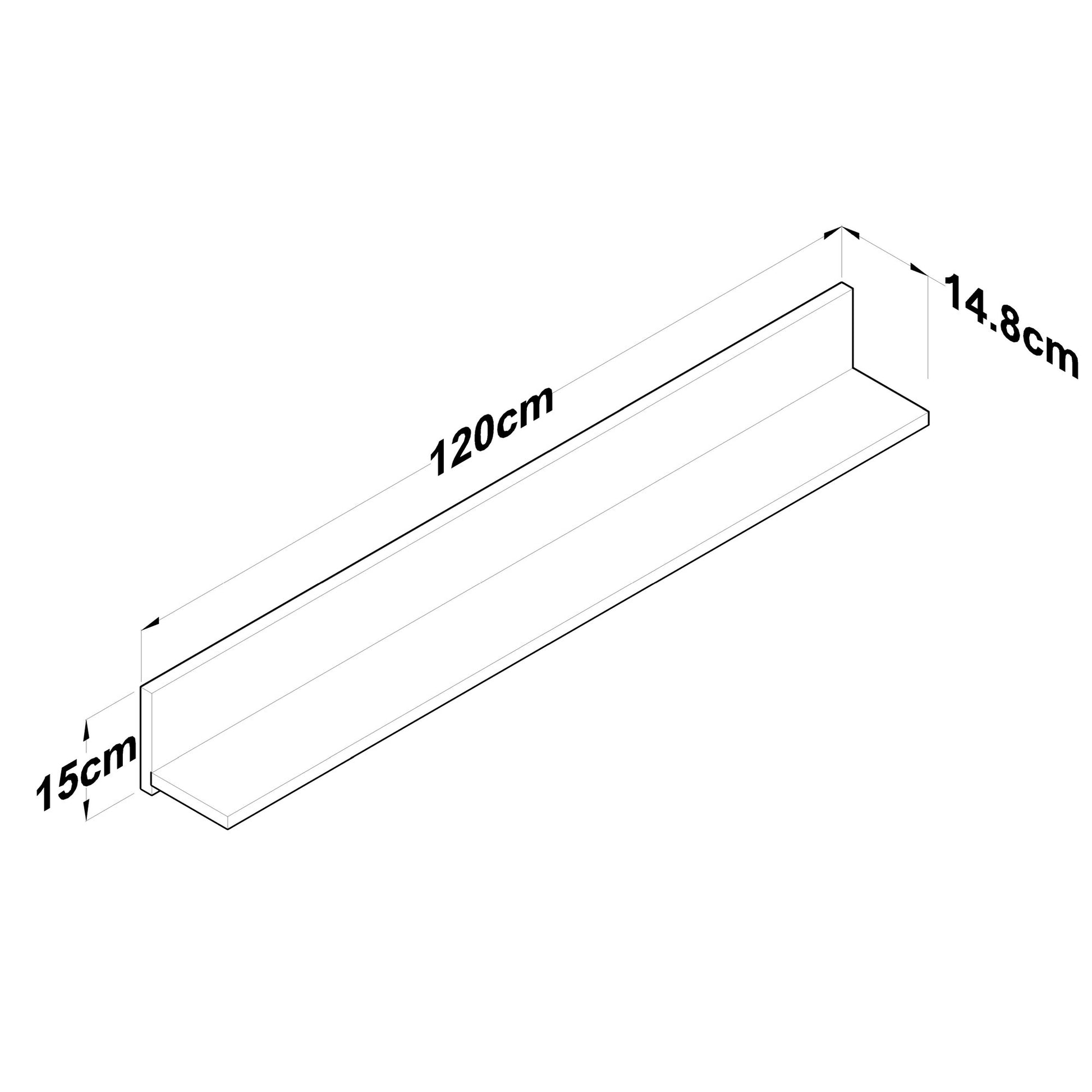 Experimente a comodidade de um amplo espaço de arrumação com as dimensões generosas desta prateleira de parede. Com uma largura de 120 cm, altura de 15 cm e profundidade de 14,8 cm, pode exibir orgulhosamente os seus livros favoritos, objectos decorativos ou fotografias de família. A sua espessura robusta de 18 mm garante que a prateleira pode suportar o peso dos seus bens mais queridos.