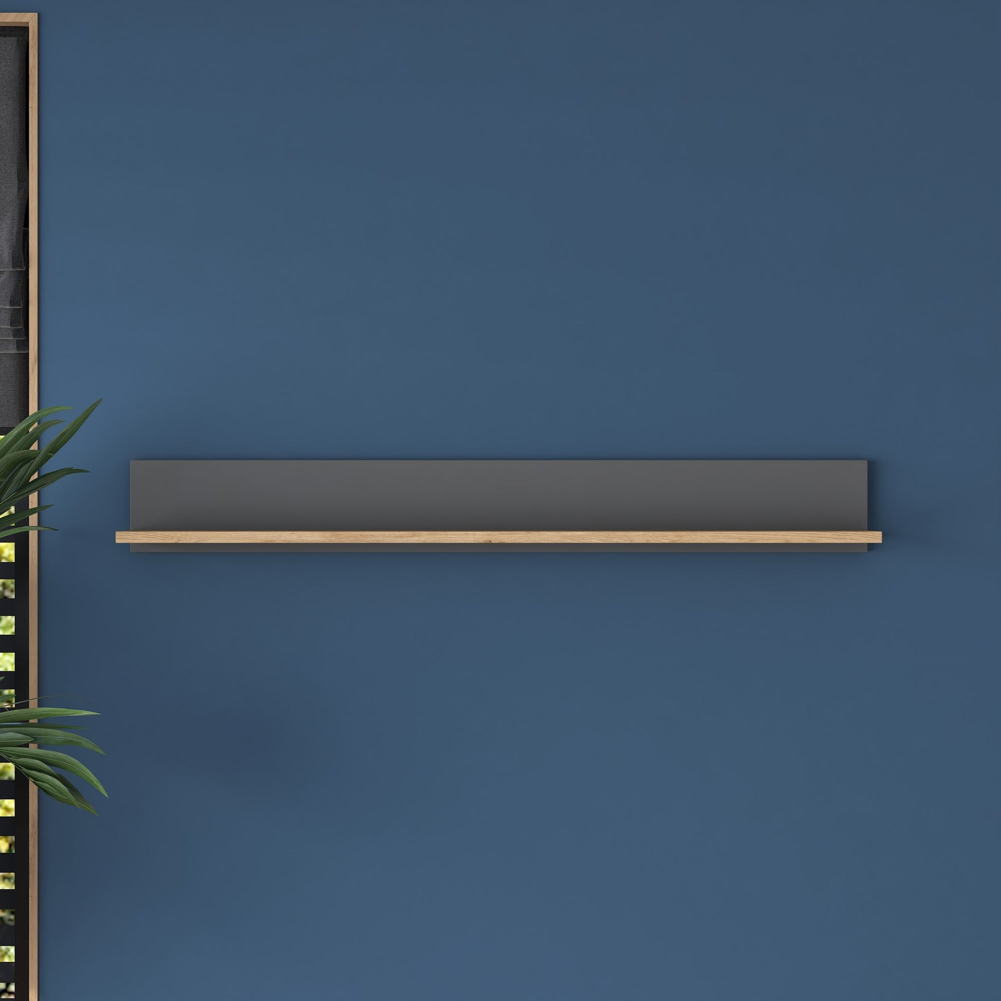 Prateleira de parede elegante, nogueira e antracite, 120 x 15 x 14,8 cm | Painel de partículas 100% revestido de melamina, 18 mm de espessura | Perfeito para decoração e organização de casa moderna
