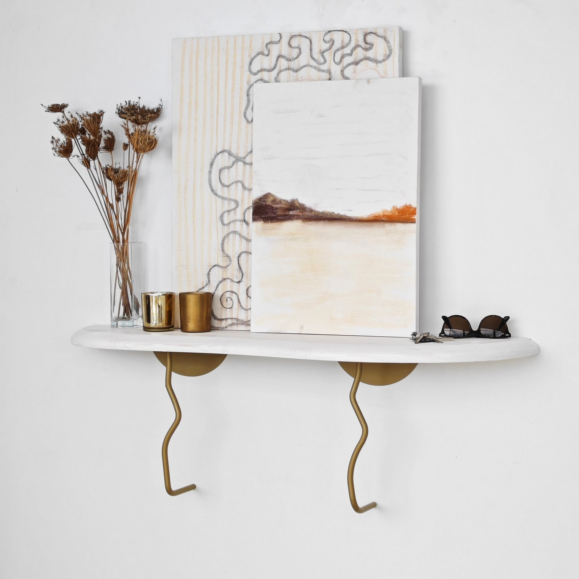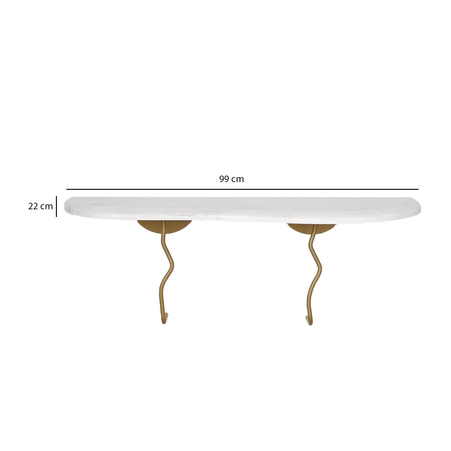 Prateleira de Parede Elegante, 99 cm x 22 cm, 100% madeira de pinho e estrutura de metal, acabamento dourado e branco | Solução de Armazenamento Elegante para Decoração de Casa e Escritório