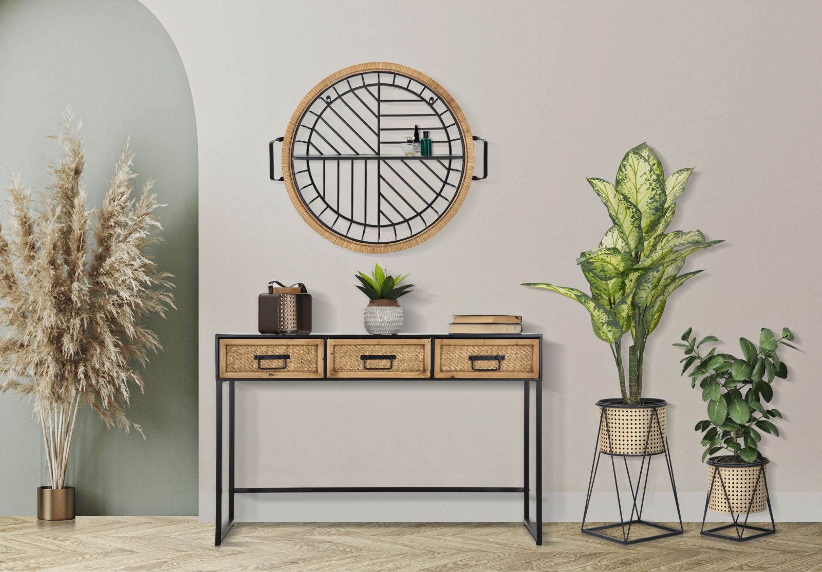 Descubra a elegância intemporal da prateleira de parede em metal BOHO CHIC. Combinando linhas simples e geométricas com um design que evoca o charme dos cestos tradicionais, esta peça destaca-se pela sua personalidade única e cativante. Fabricada em ferro e rattan, oferece não só durabilidade, mas também um toque de sofisticação a qualquer ambiente. Ideal para quem aprecia a fusão entre modernidade e tradições artesanais, esta prateleira é a escolha perfeita para dar um toque de charme e funcionalidade à sua casa.