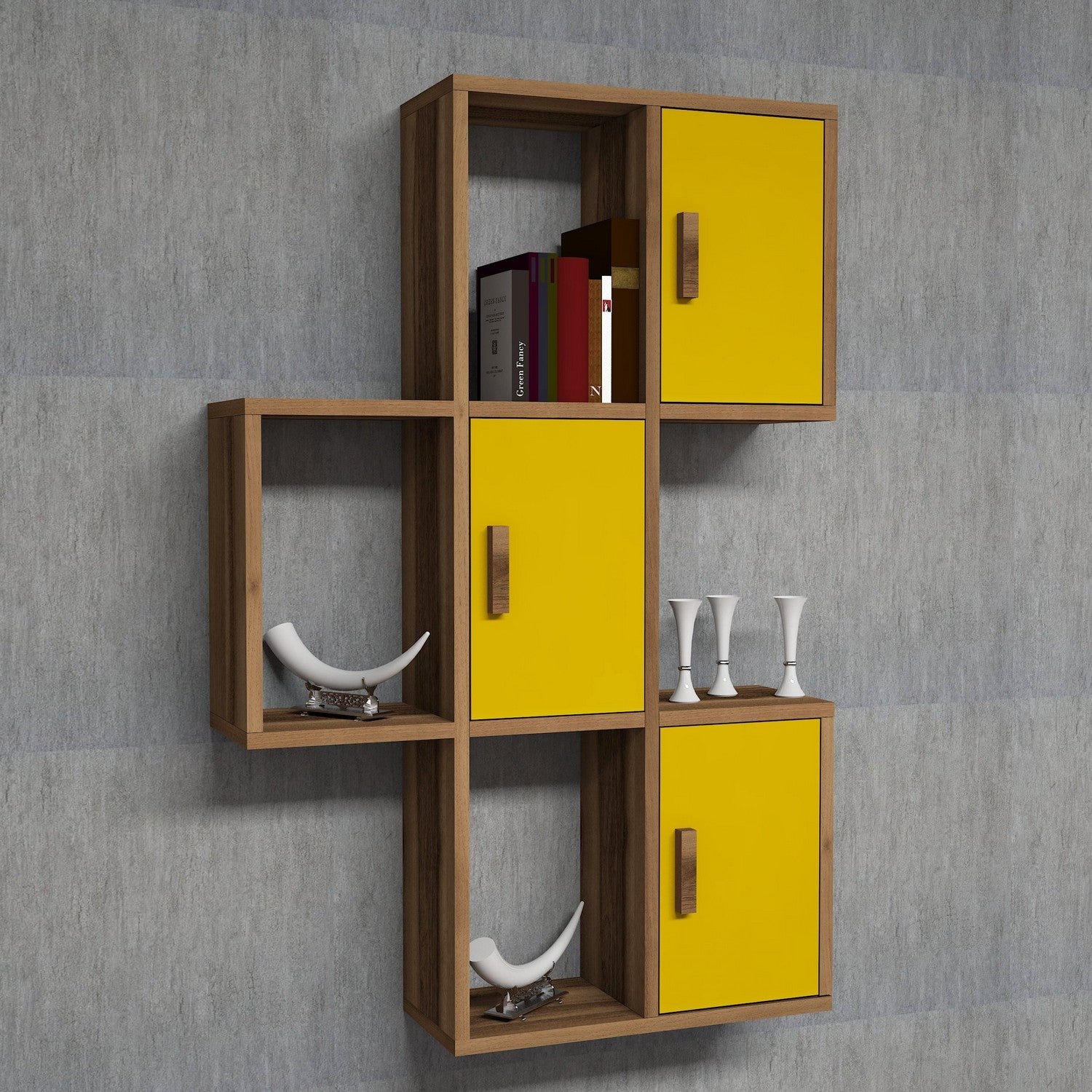 Prateleira de Parede – 50 x 112,6 x 20 cm – Nogueira e Amarelo – Painel de Partículas revestido a Melamina