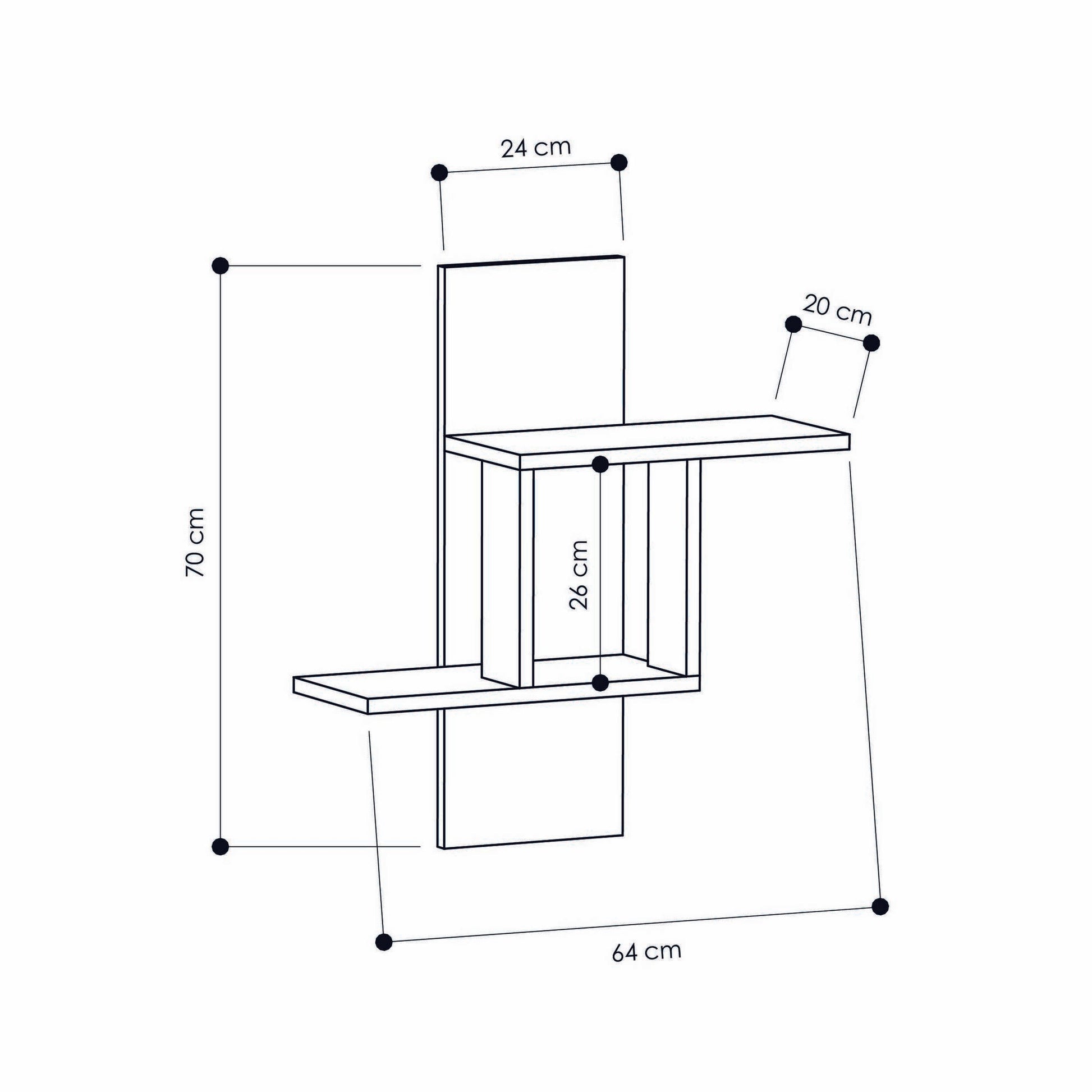 Com uma espessura de 18 mm, a prateleira de parede escandinava oferece um espaço amplo para expor os seus livros, plantas ou objectos decorativos favoritos. As suas dimensões de 64 cm de largura, 70 cm de altura e 20 cm de profundidade tornam-na no tamanho ideal para qualquer divisão, quer seja a sala de estar, o quarto ou o escritório.