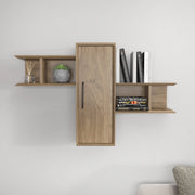 Prateleira de parede elegante em nogueira, 118,6 x 35 x 51,8 cm | Painel de partículas 100% revestido em melamina, 18 mm de espessura | Solução de armazenamento elegante para casas modernas
