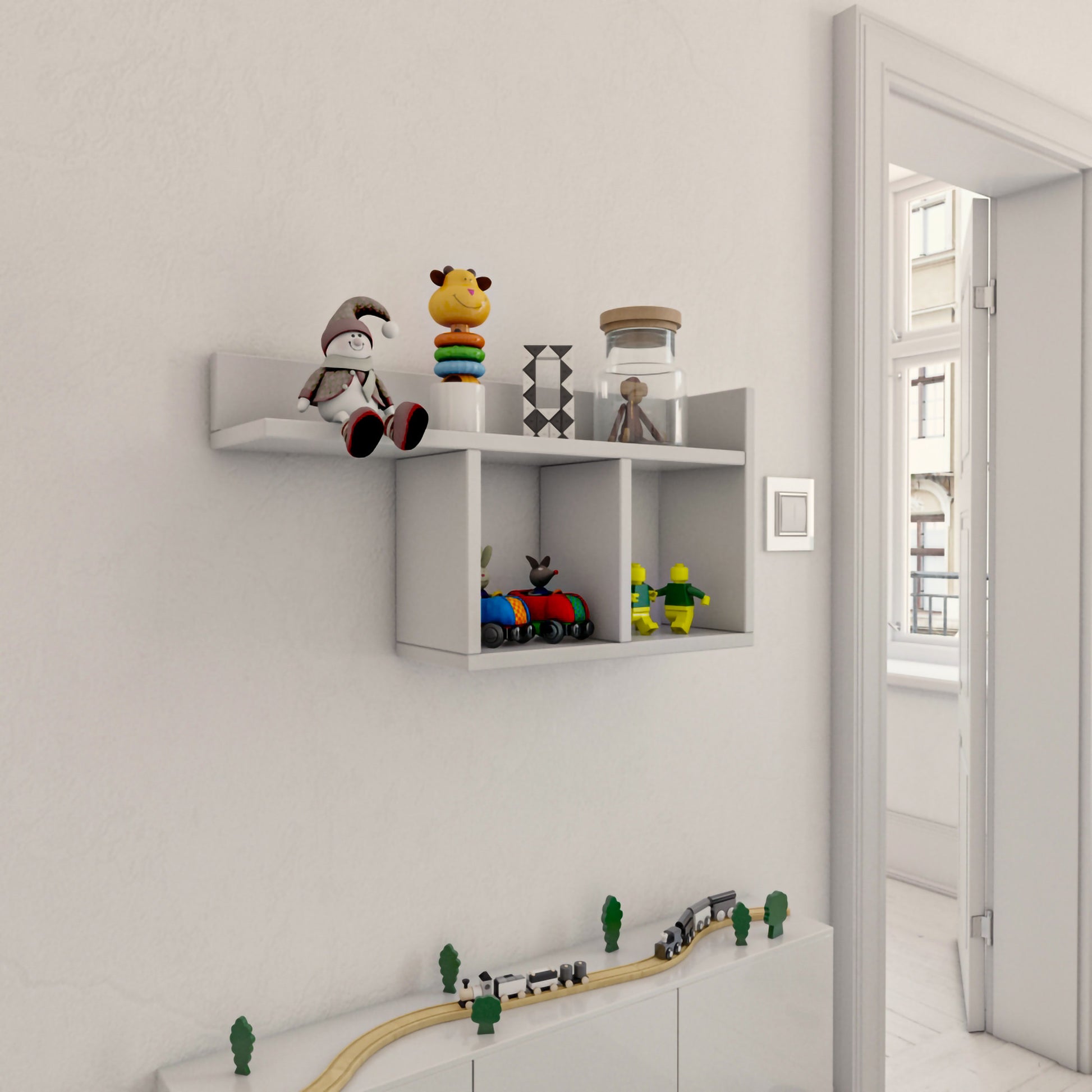 As linhas simples e o design minimalista desta prateleira de parede incorporam na perfeição o conceito escandinavo, acrescentando um toque de elegância moderna a qualquer divisão. A cor branca confere uma sensação de frescura e pureza, criando uma atmosfera serena e convidativa.