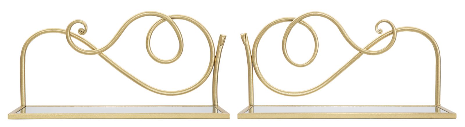 Transforme a decoração da sua casa com as prateleiras de parede GLAM em dourado. Com design elegante e linhas suaves e sinuosas, estas prateleiras são um verdadeiro toque de classe para qualquer espaço glamoroso. Fabricadas em metal dourado, MDF e vidro espelhado, combinam na perfeição com qualquer estilo de mobiliário, oferecendo não só elegância como também funcionalidade. Dê destaque às suas peças favoritas e eleve a sofisticação do seu ambiente com estas prateleiras de qualidade excecional.
