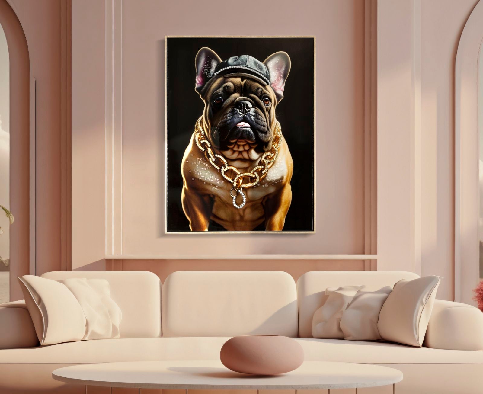 Descubra a fusão perfeita entre arte e estilo com este quadro em tela "MODERN". Apresentando um buldogue icónico, este design multicolor transporta-nos para a vibrante energia do rap dos anos 90. Completo com uma moldura de madeira e um acabamento em metal dourado, este quadro é uma peça de destaque que eleva qualquer espaço. As aplicações em relevo acrescentam uma dimensão extra, tornando-o uma escolha irresistível para quem valoriza qualidade e personalidade no seu ambiente. Transforme a sua casa num verdadeiro reflexo de classe e modernidade.