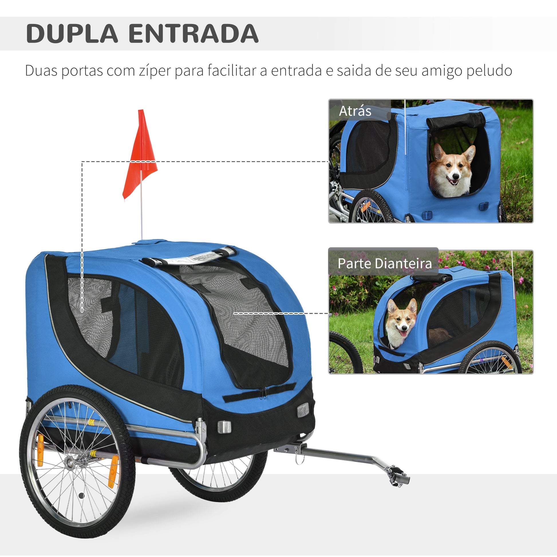 Reboque de Bicicleta para Cães 130x73x90cm Azul e Preto