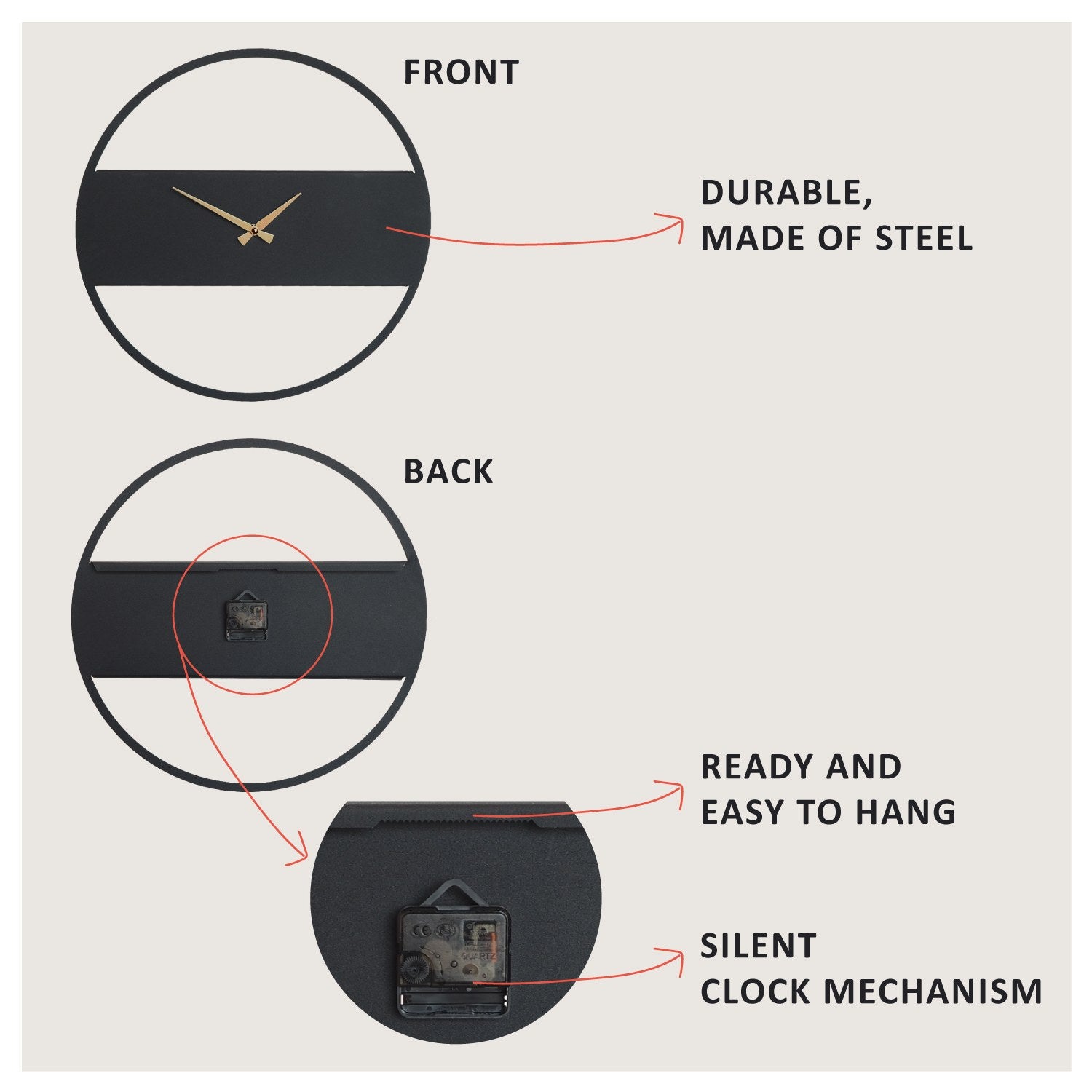 - A(s) cor(es) preta(s) do relógio dá(m) um toque de sofisticação e versatilidade à decoração da sua casa.