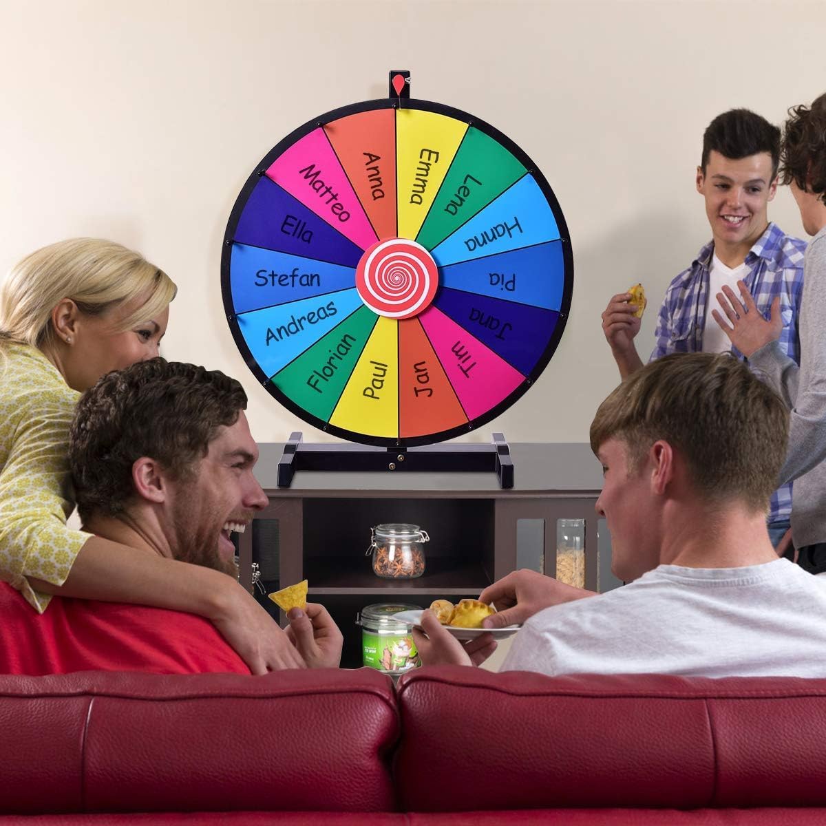 - Experiência de jogo personalizada: Com um diâmetro de 24 polegadas, esta roda da fortuna é grande e chamativa. Está dividida em 14 secções para que possa usar um marcador para anotar os prémios e personalizar o jogo ao seu gosto.