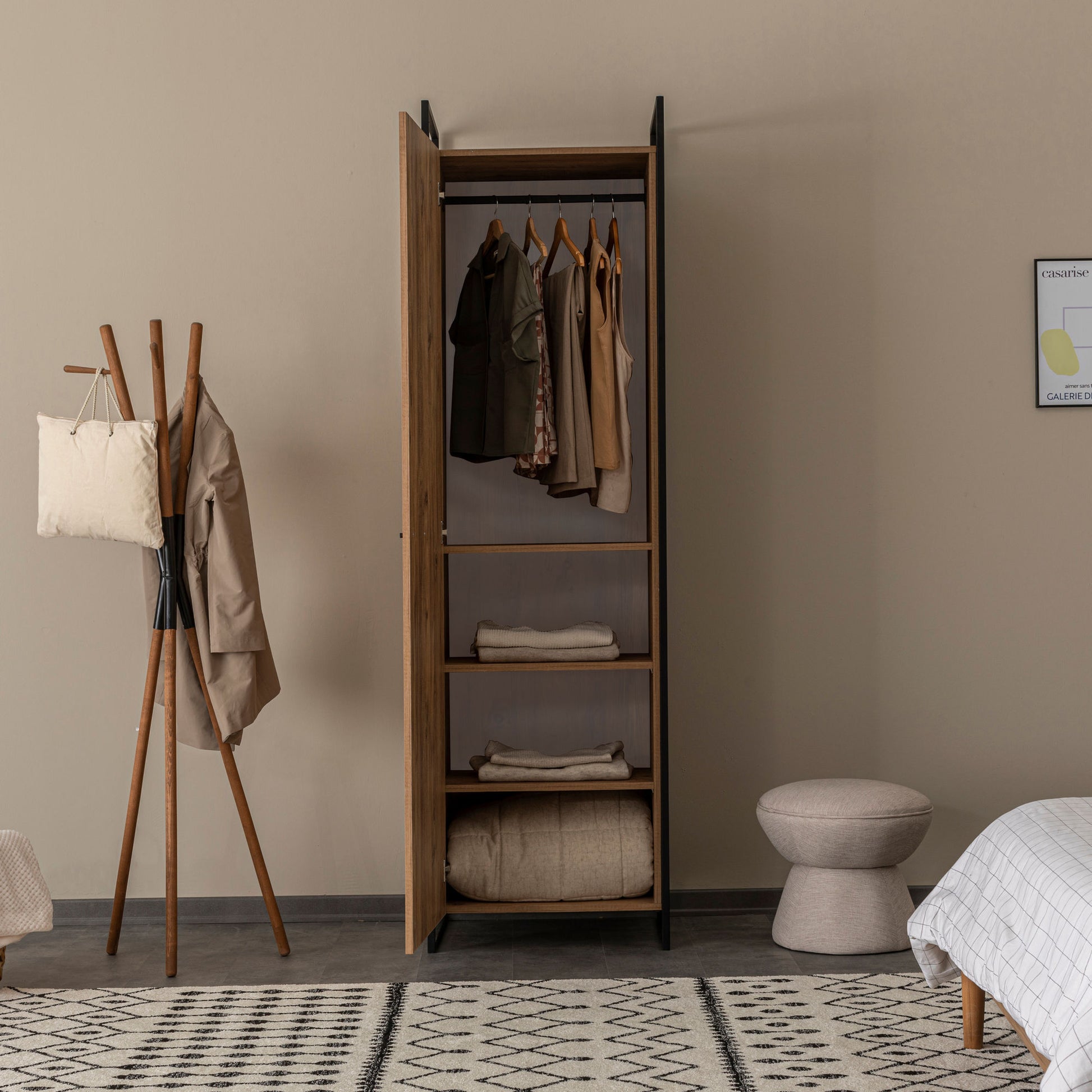 Equipado com pernas metálicas e uma altura de perna de 10 cm, este roupeiro não só tem estilo como também é resistente. Pode ser facilmente fixado à parede para maior estabilidade.