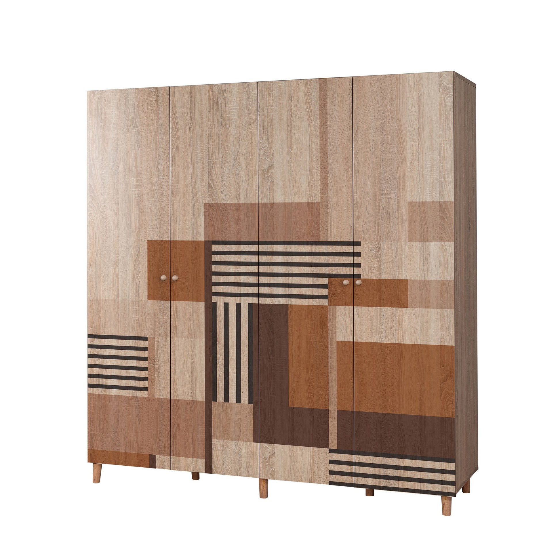 Construído com 100% de aglomerado revestido a melamina, este roupeiro foi feito para durar. A espessura de 18 mm garante uma resistência e robustez excepcionais, proporcionando-lhe uma solução de arrumação fiável para os próximos anos. As pernas em viga de chifre dão um toque extra de elegância, elevando a estética geral do seu quarto.