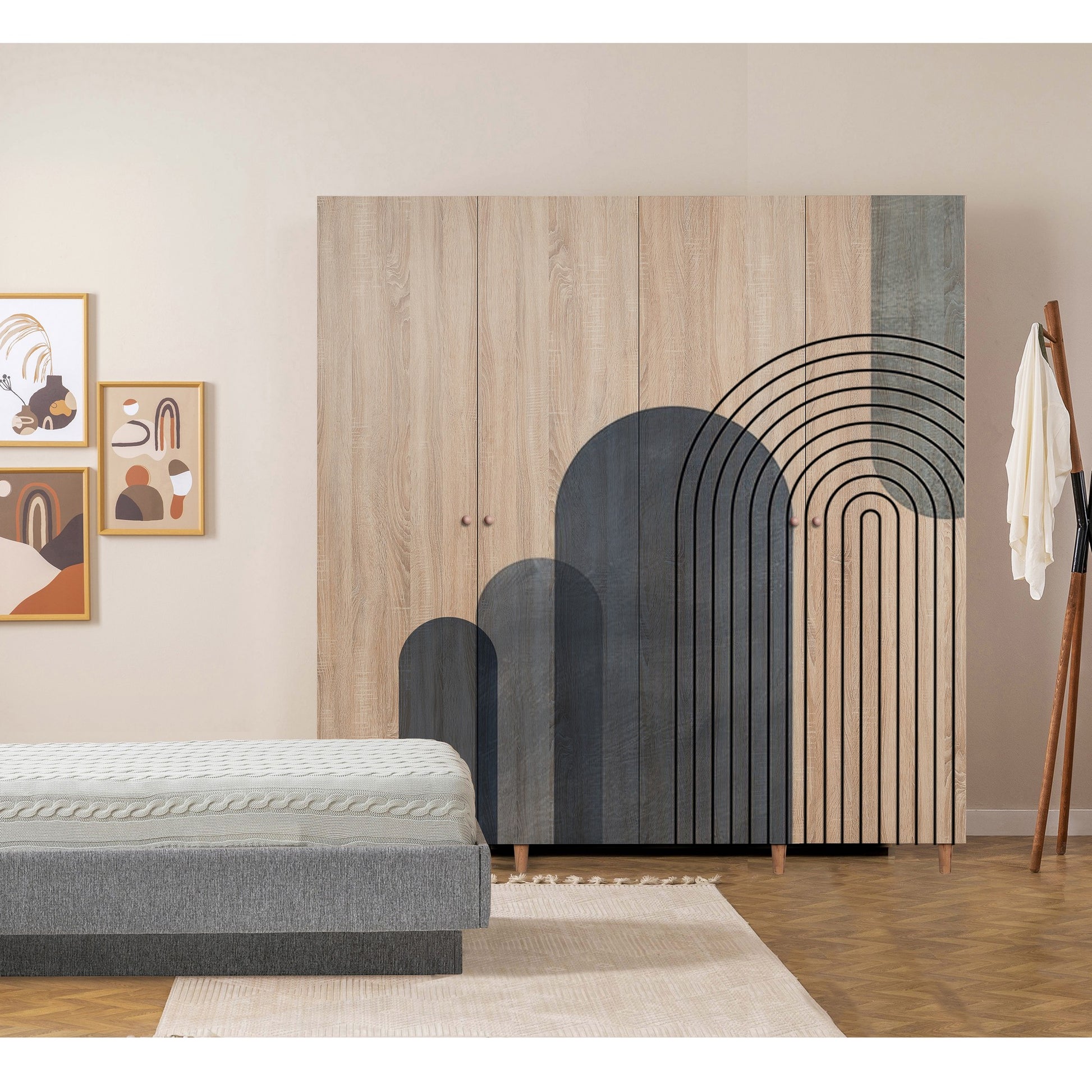 Com o seu design elegante e cor sonomo, o nosso roupeiro integra-se facilmente em qualquer decoração de quarto. O revestimento UV acrescenta um toque de sofisticação, tornando-o numa peça de destaque no seu quarto. Os puxadores em madeira maciça não só realçam o aspeto geral, como também proporcionam uma aderência confortável.