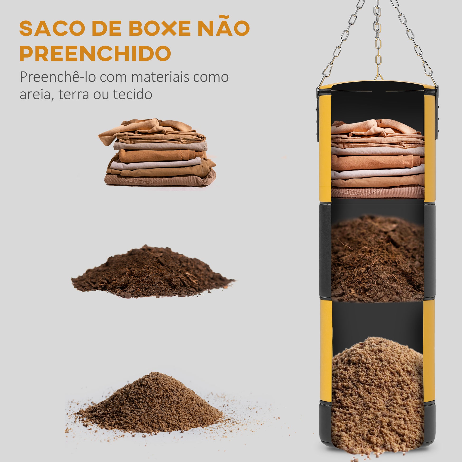 O Saco de Boxe Amarelo e Preto de 32x32x135 cm é o equipamento ideal para treinos de boxe para adultos. Este conjunto completo inclui ligaduras para as mãos, luvas de boxe, protetores de palma, munhequeiras e tornozeleiras, cobrindo todas as suas necessidades de treino.
