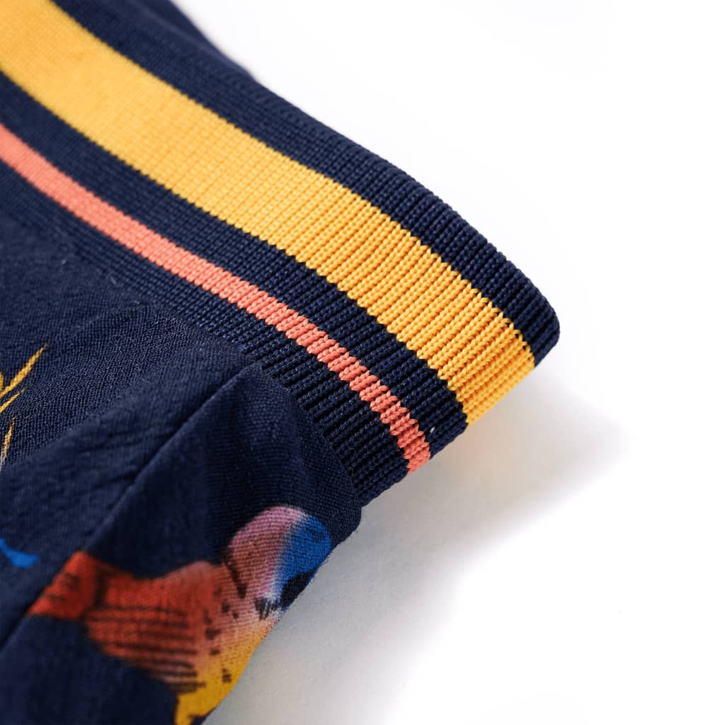 Esta saia para criança possui um corte em A e uma cintura elástica. Esta saia infantil possui uma estampa de pássaros coloridos por todo o lado. A mini-saia para criança é feita de um material macio que inclui viscose e poliéster, proporcionando conforto e respirabilidade.