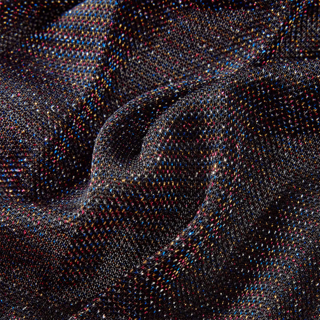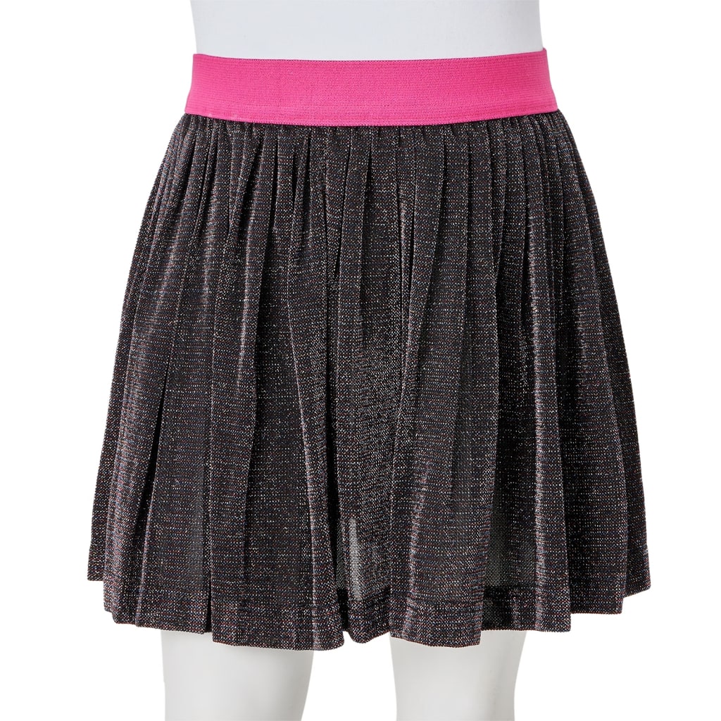 Esta saia para criança possui um corte em A e uma cintura elástica larga. O plissado adiciona elegância à saia curta para criança. A saia para menina possui brilhos coloridos. A saia infantil é feita de um material macio que inclui poliéster, lurex e elastano para conforto e respirabilidade.