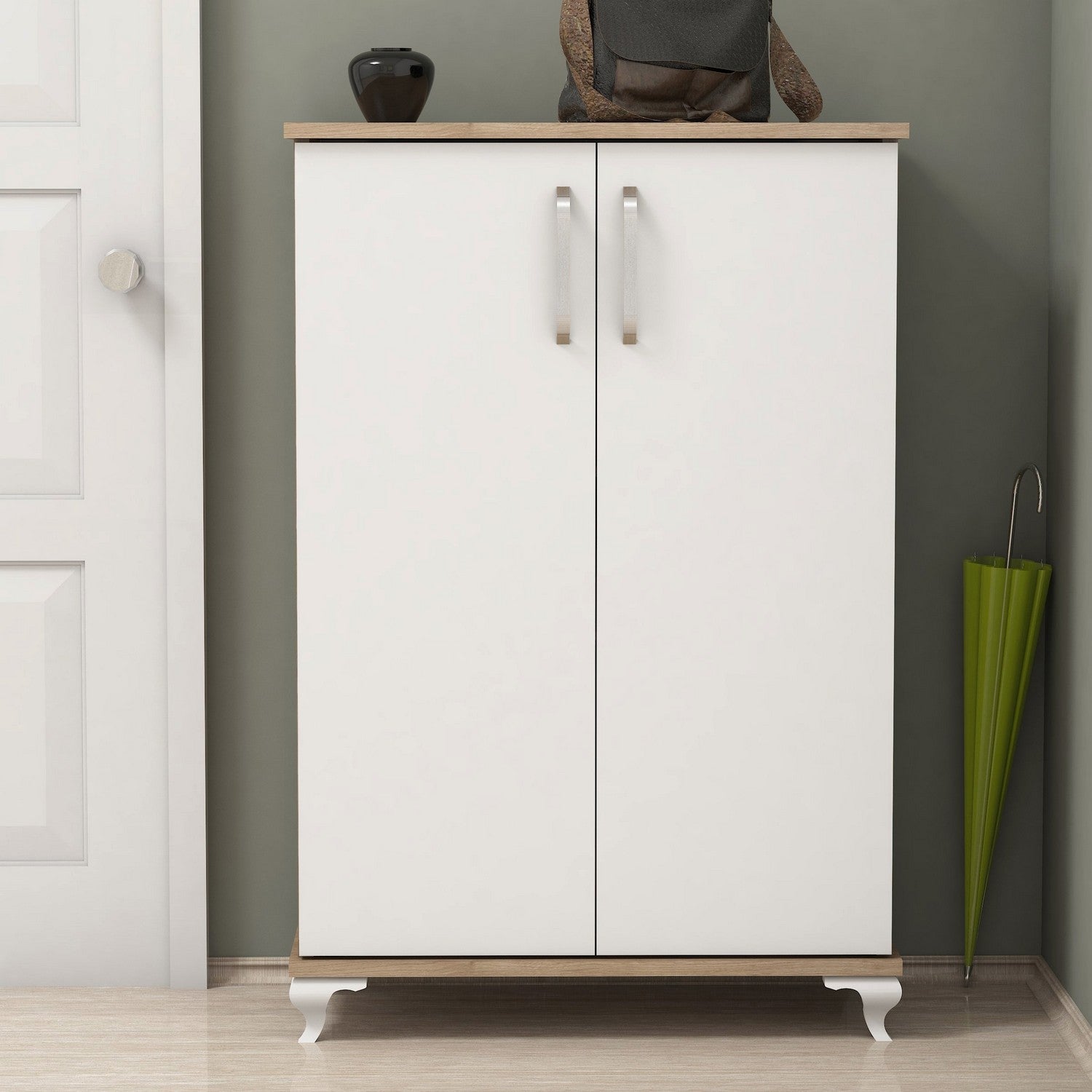 Fabricado a partir de painéis de partículas 100% revestidos a melamina, o nosso armário para sapatos foi concebido para durar. A espessura de 18 mm garante robustez e estabilidade, enquanto a combinação de cores nogueira e branco acrescenta um toque de sofisticação. Pode ter a certeza de que este armário resistirá ao teste do tempo.