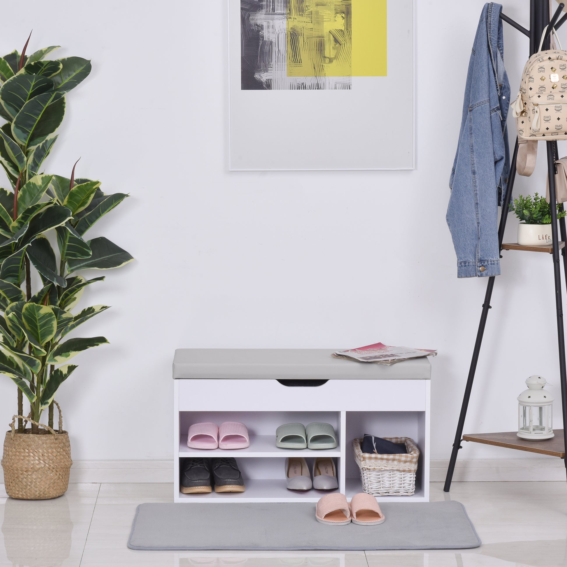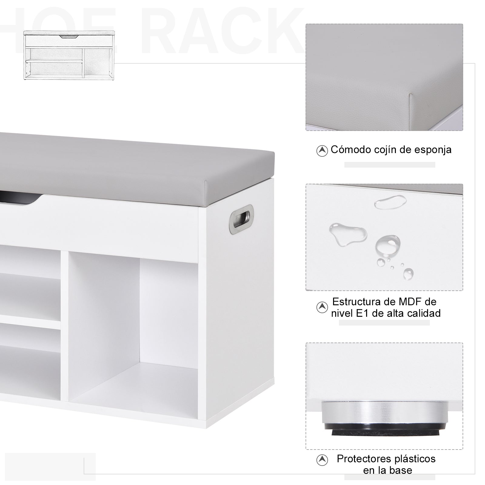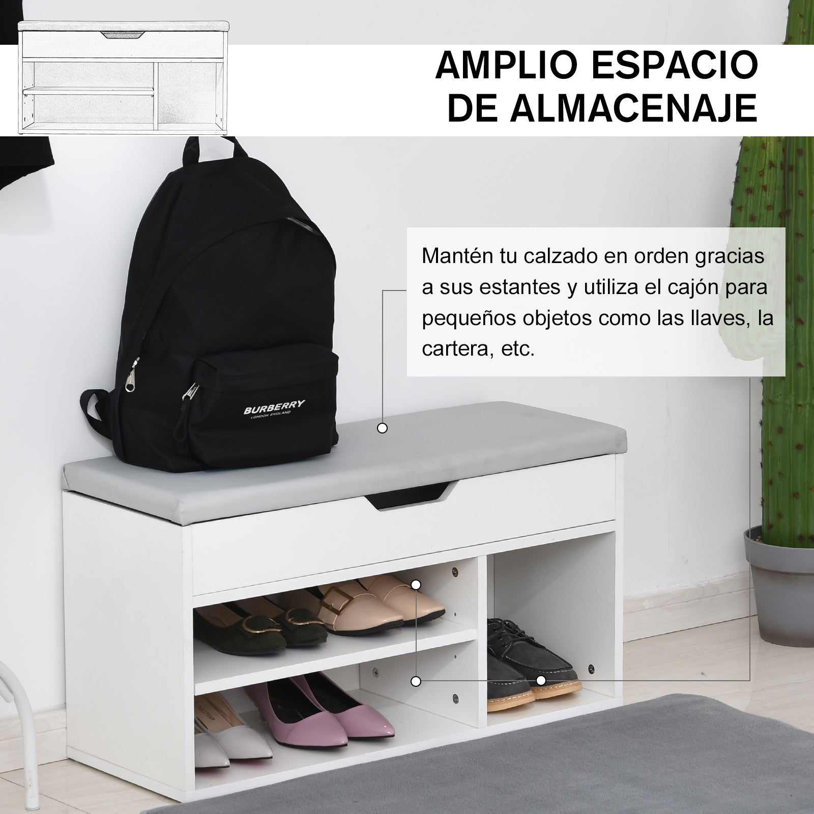 - Benefícios: Assento confortável para calçar e tirar os sapatos, gaveta para armazenar pequenos objetos, prateleiras para vários pares de sapatos