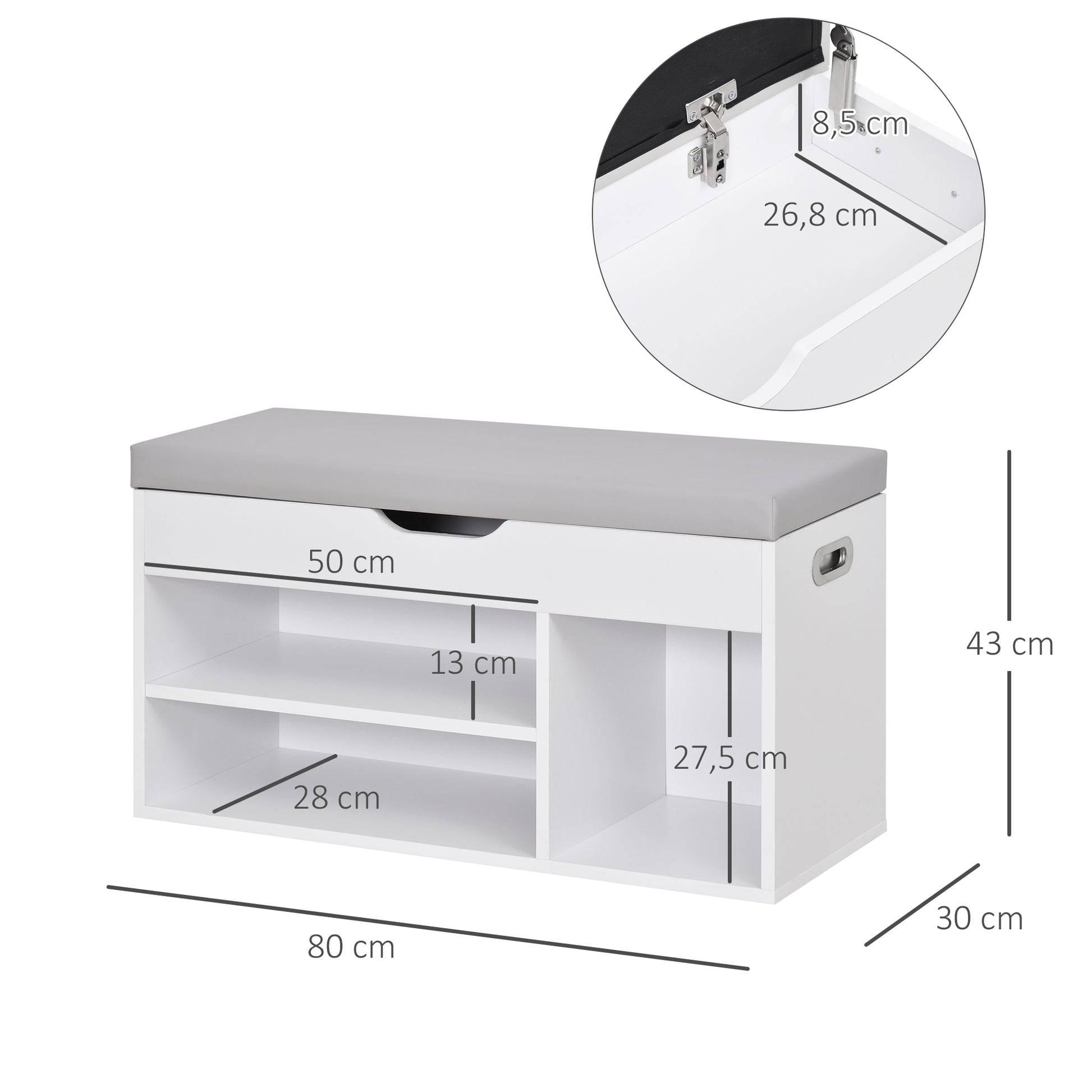 Sapateira com Assento Acolchoado – 80x30x43cm – Branco – MDF