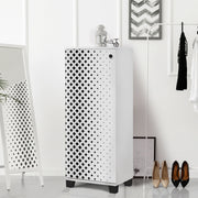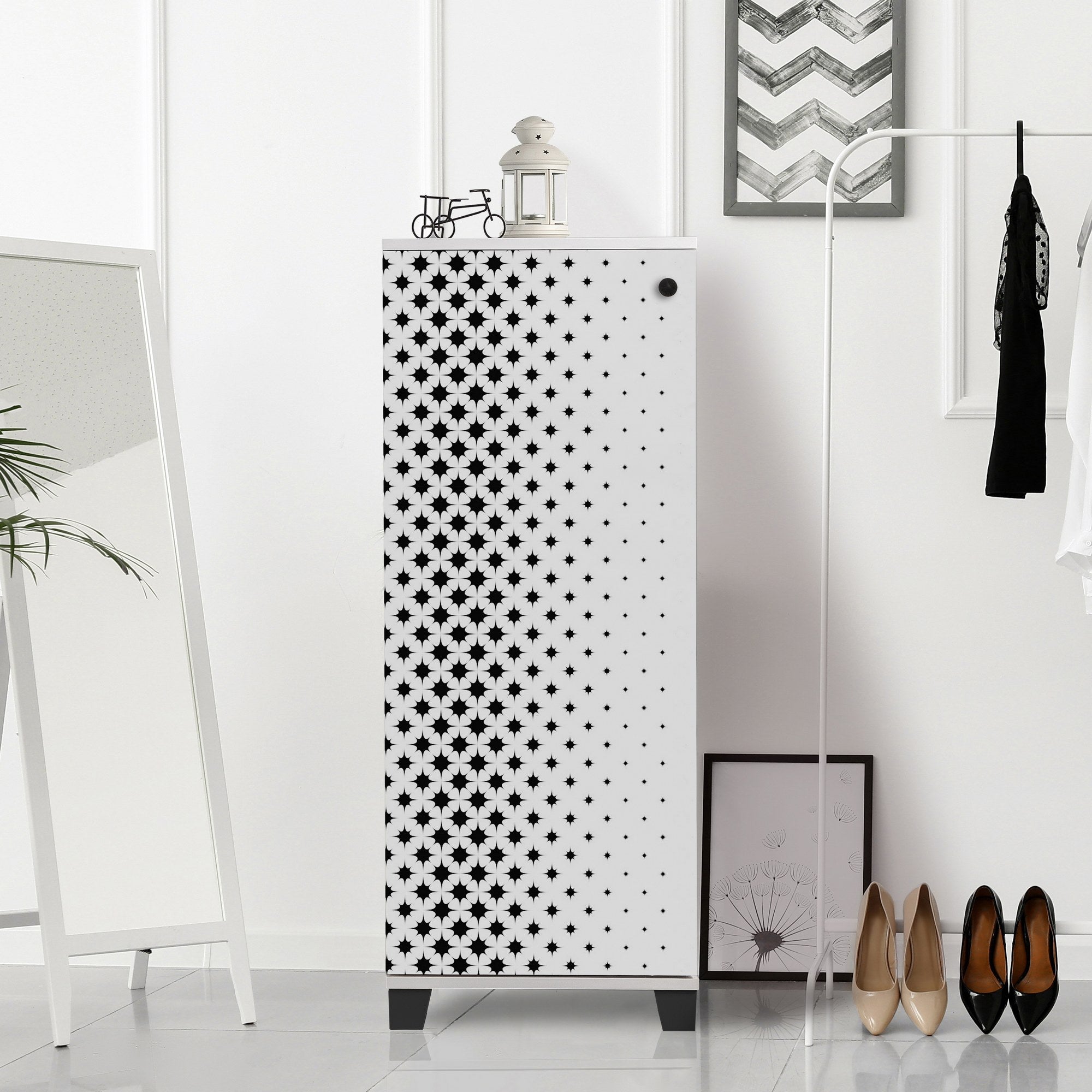 Com 50 cm de largura, 127 cm de altura e 38 cm de profundidade, este armário para sapatos foi concebido para se adaptar perfeitamente a qualquer espaço. As suas pernas de plástico garantem estabilidade, enquanto a opção de o fixar à parede acrescenta uma camada extra de segurança. Diga adeus à desarrumação e olá a uma casa arrumada e com estilo.