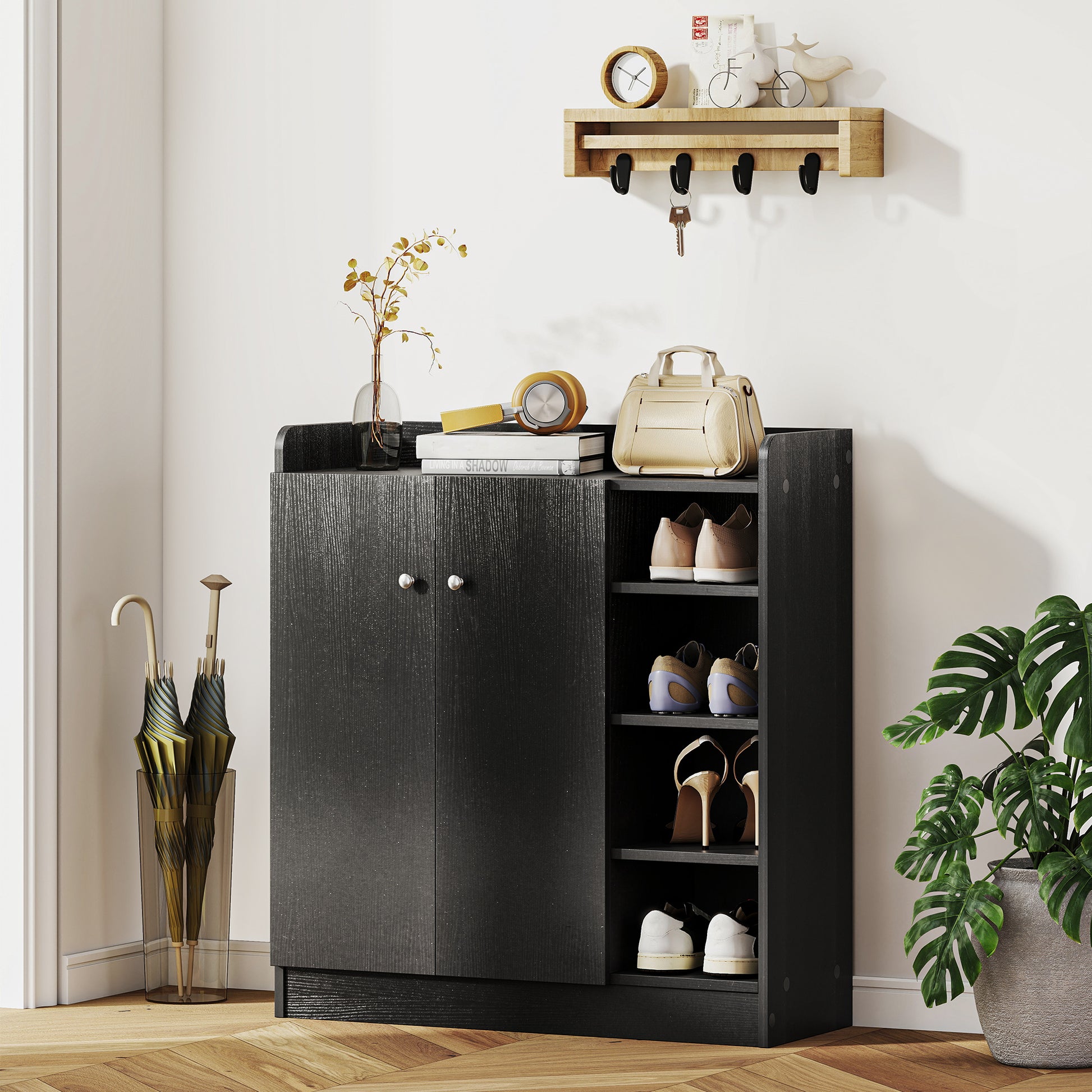 Sapateira Multiuso com 2 Portas e 4 Prateleiras Ajustáveis 83x30x90 cm - Cor Preto