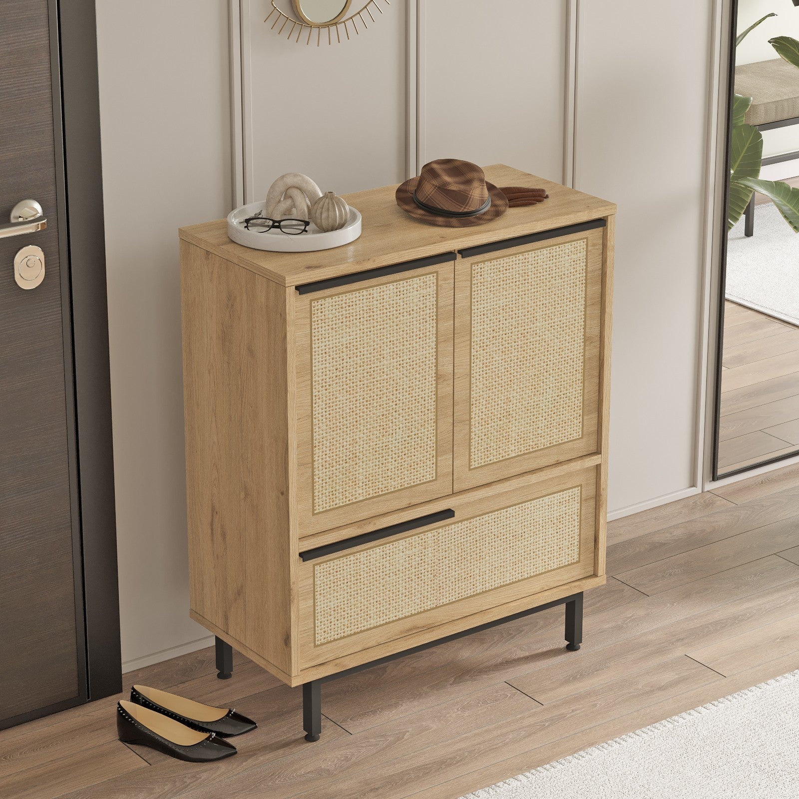 Com o seu design elegante e moderno, a nossa sapateira irá elevar instantaneamente a estética de qualquer divisão. A combinação das cores nogueira e carvalho acrescenta um toque de sofisticação, tornando-a numa adição perfeita à decoração da sua casa. Diga adeus às pilhas de sapatos desarrumados e olá a um espaço elegante e organizado.