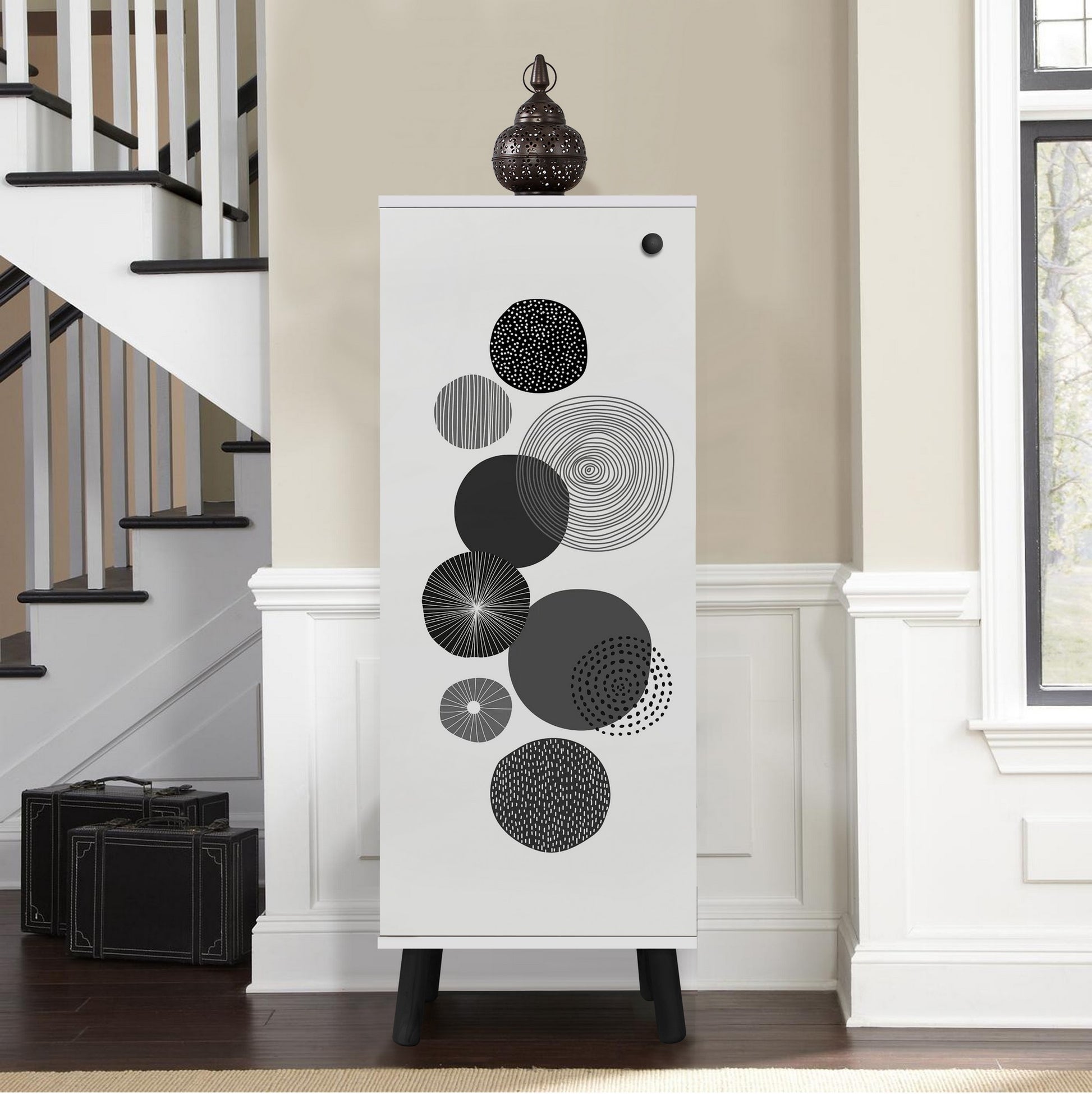 Com um design elegante e moderno, o nosso armário para sapatos combina na perfeição com qualquer decoração interior. A combinação das cores branca e preta dá um toque contemporâneo, tornando-a numa peça de destaque no seu corredor ou quarto. O revestimento UV não só melhora o seu aspeto visual, como também o protege de riscos e desbotamento.