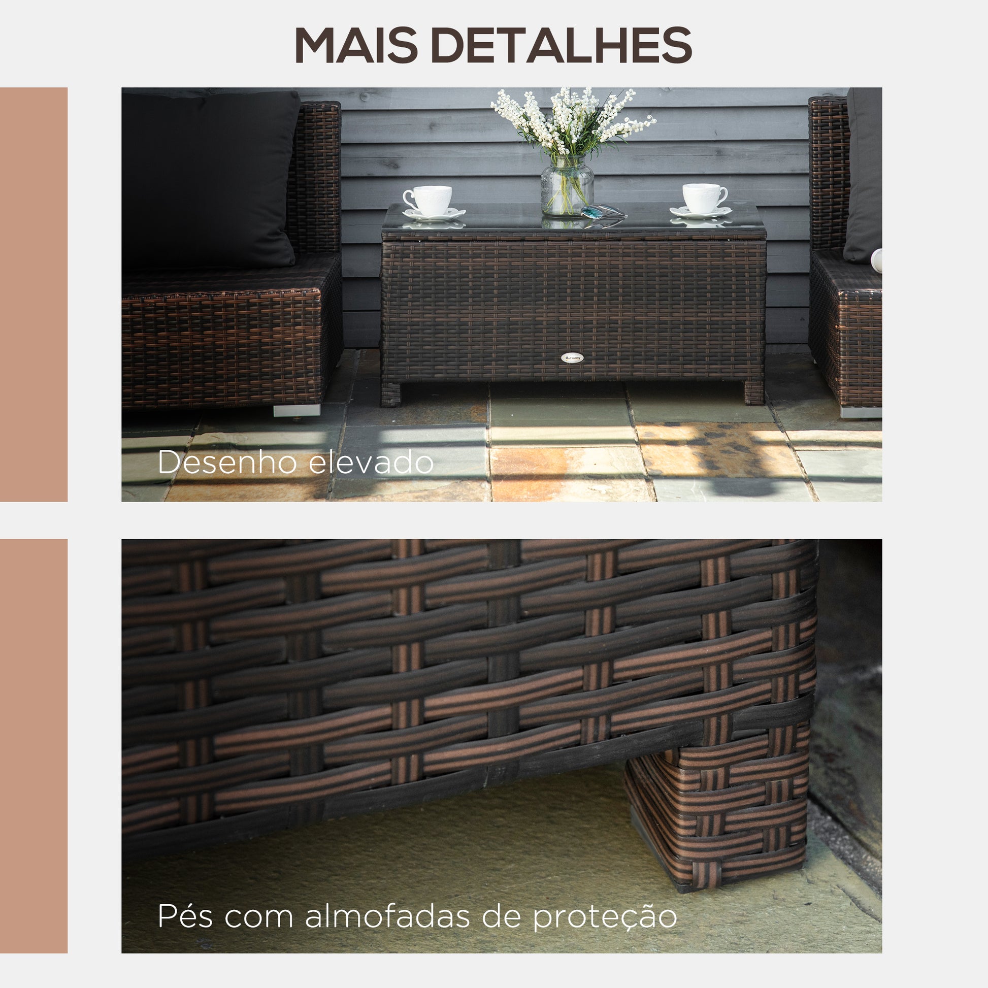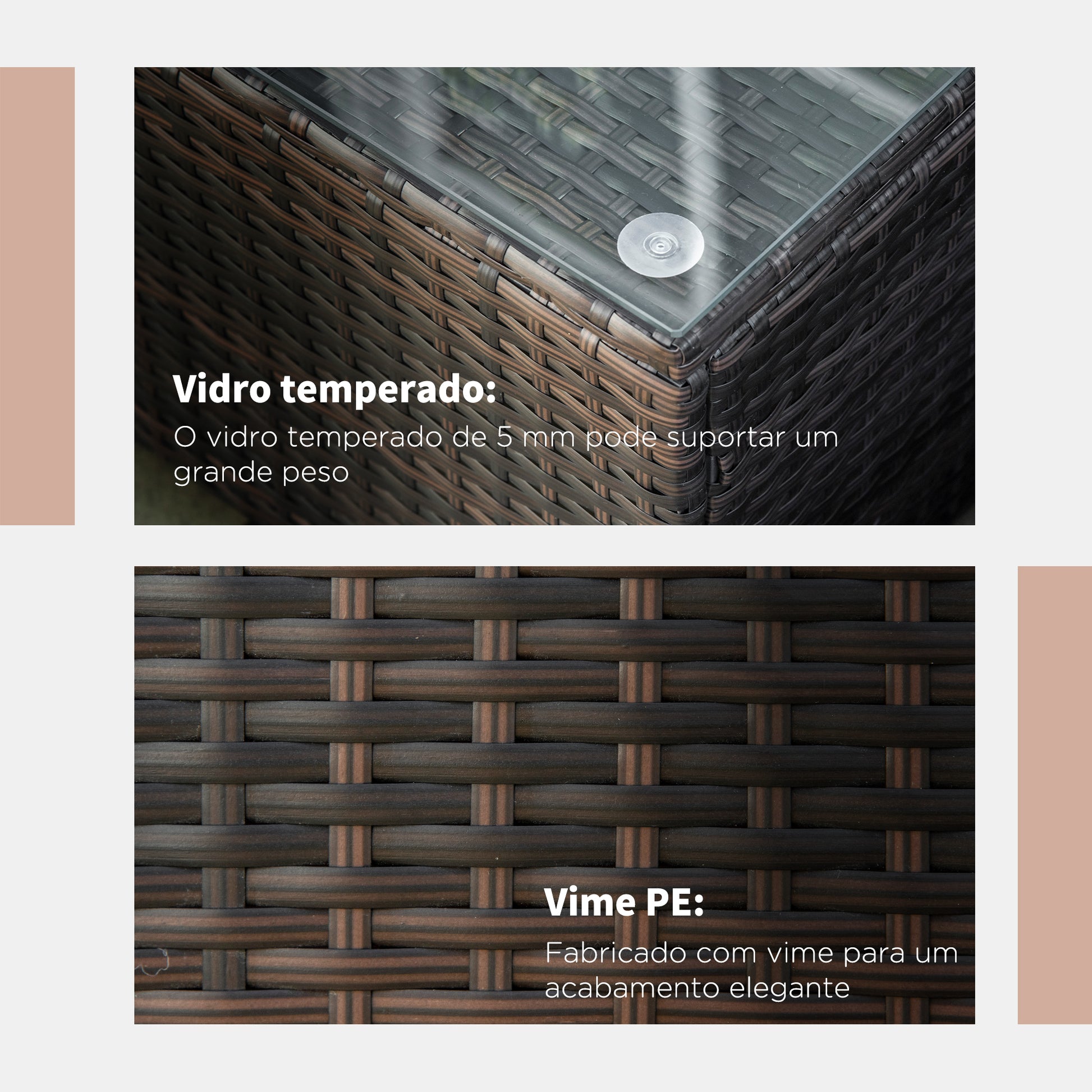 Traga funcionalidade e estilo ao seu espaço exterior com esta mesa de centro de vime sintético marrom. Fabricada com materiais resistentes e duráveis, esta mesa é perfeita para desfrutar de momentos relaxantes ao ar livre.