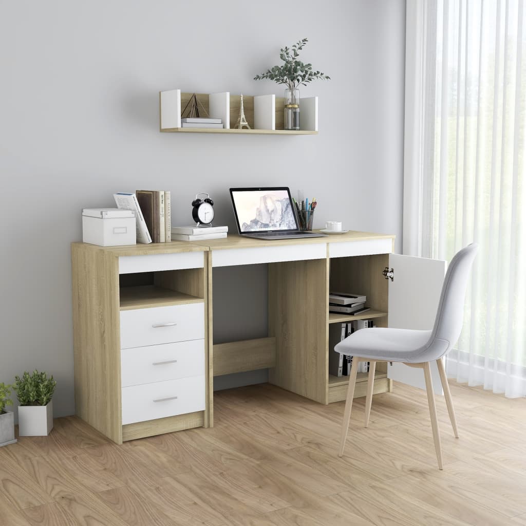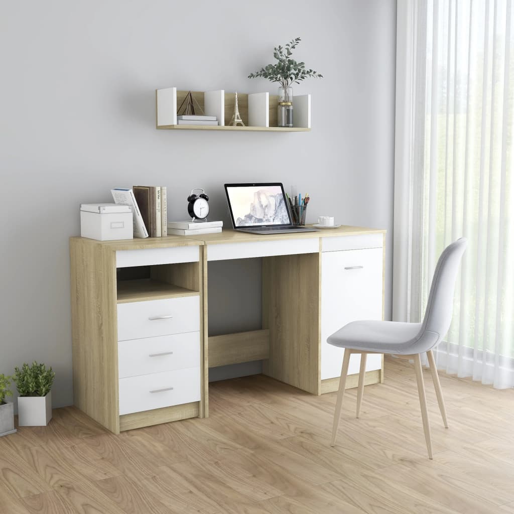 A secretária, feita em contraplacado de qualidade, garante robustez e durabilidade. Também oferece um amplo espaço de arrumação com 3 gavetas e 1 porta. São ideais para guardar livros, revistas, pastas de arquivos e outros artigos essenciais. A mesa é fácil de limpar com um pano húmido.