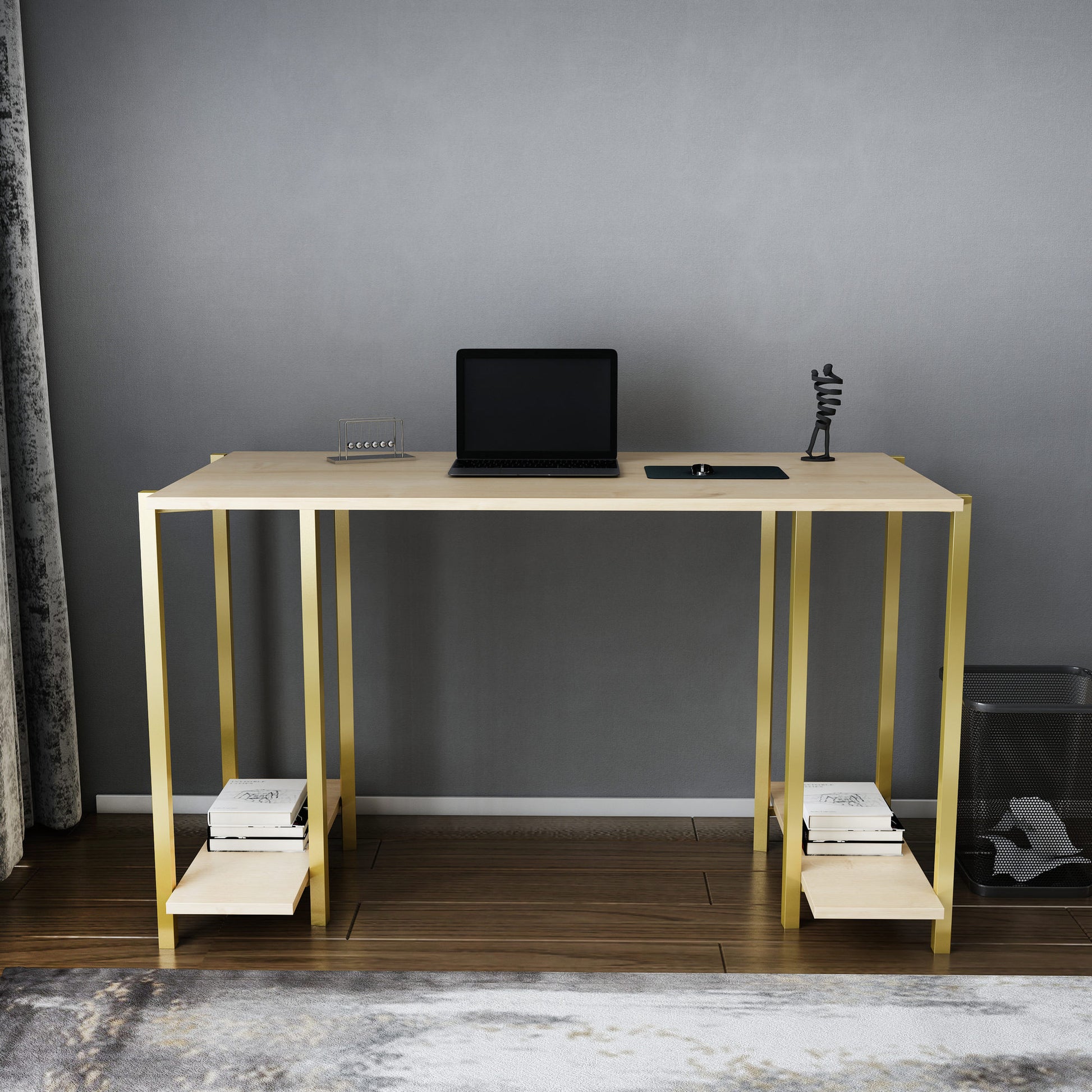 Secretária de Estudo/Escritório Moderna, Dourado e Carvalho, 125,2 x 60 x 73,8 cm | Painel de Partículas 100% Revestido em Melamina, 18 mm de Espessura | Design Elegante para Casa e Escritório