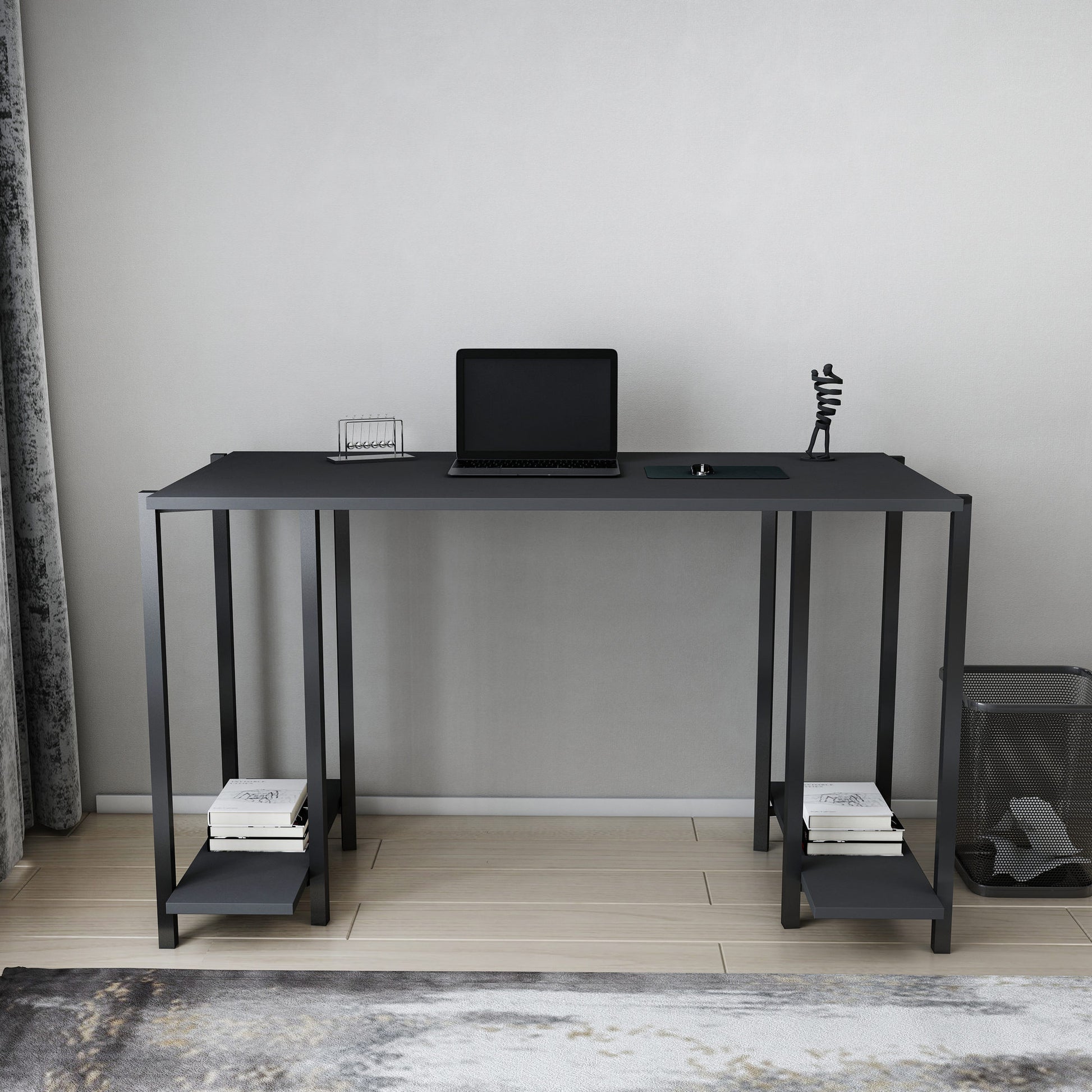 Secretária de Estudo/Escritório Moderna, Preta e Antracite, 125,2 x 60 x 73,8 cm | Painel de Partículas 100% Revestido em Melamina, 18 mm de Espessura | Ideal para Escritórios Domésticos e Espaços Industriais