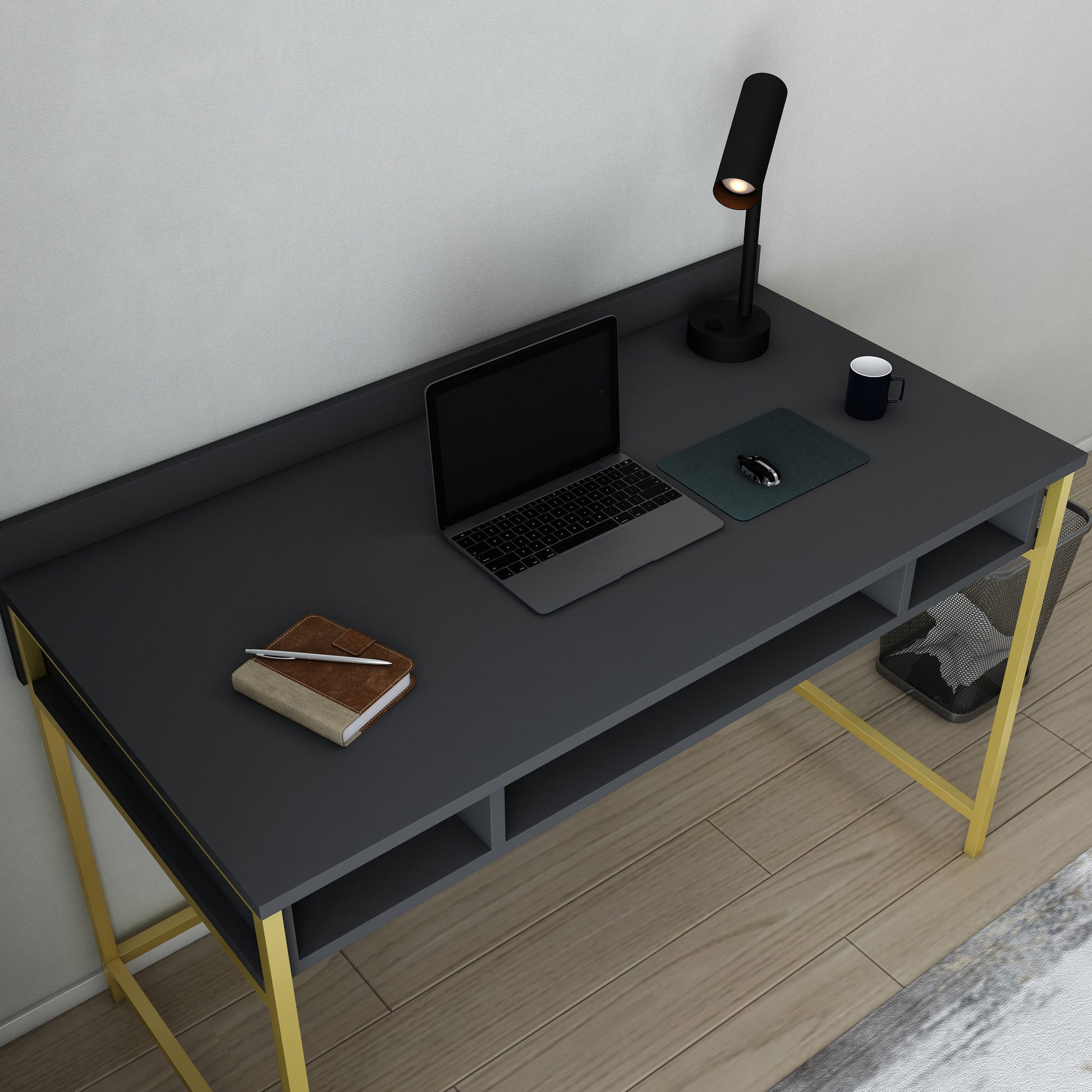 Secretária de Estudo/Escritório Moderna, Dourado e Antracite, 120 x 60 x 74,8 cm | Painel de Partículas 100% Revestido em Melamina, 18 mm de Espessura | Design Glamouroso para Casa e Escritório