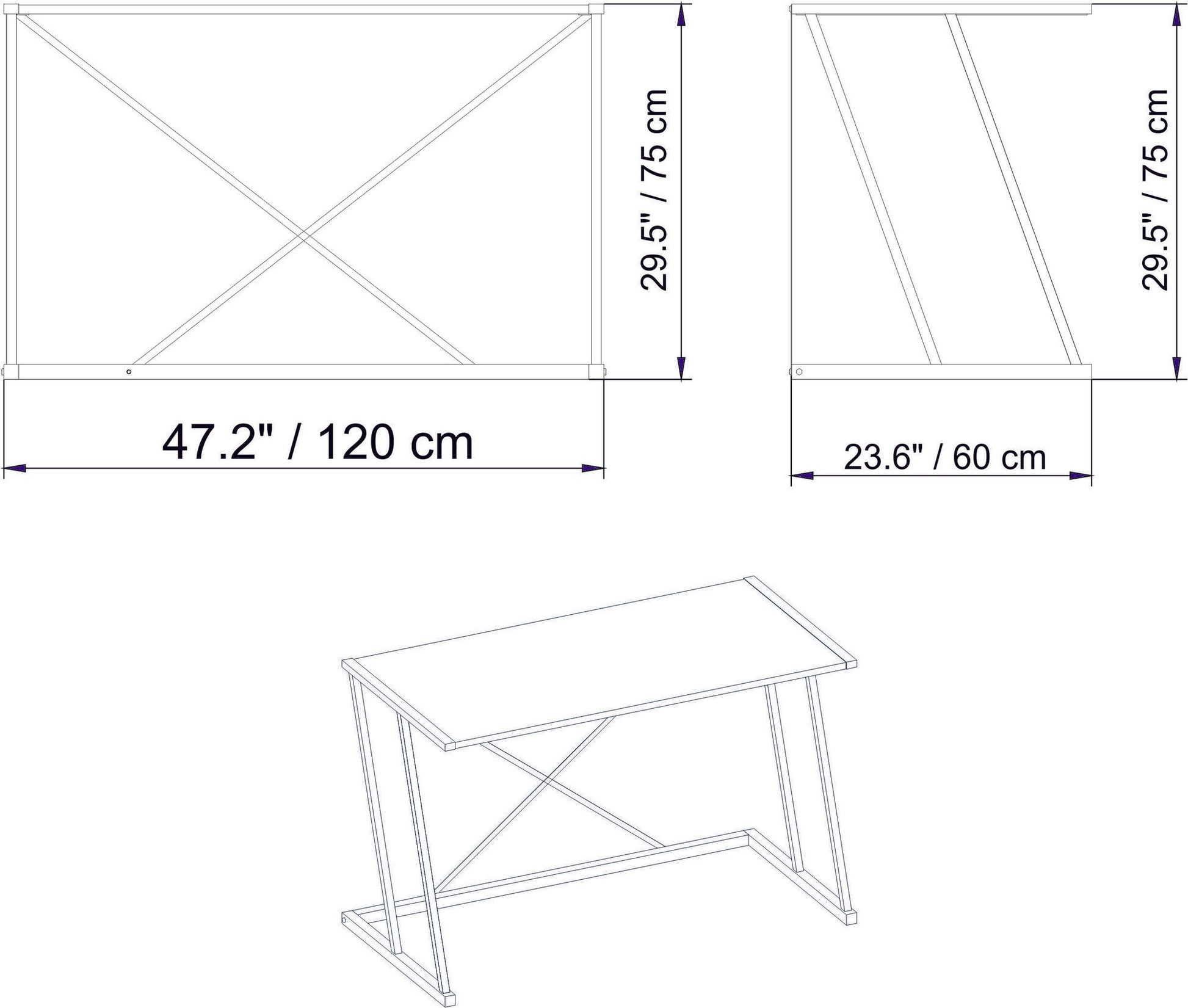 Com uma largura generosa de 120 cm, altura de 75 cm e profundidade de 60 cm, esta secretária oferece um espaço amplo para todos os seus objectos de estudo essenciais. As pernas metálicas não só dão um toque moderno, como também oferecem estabilidade e apoio, permitindo-lhe trabalhar com facilidade e concentração.