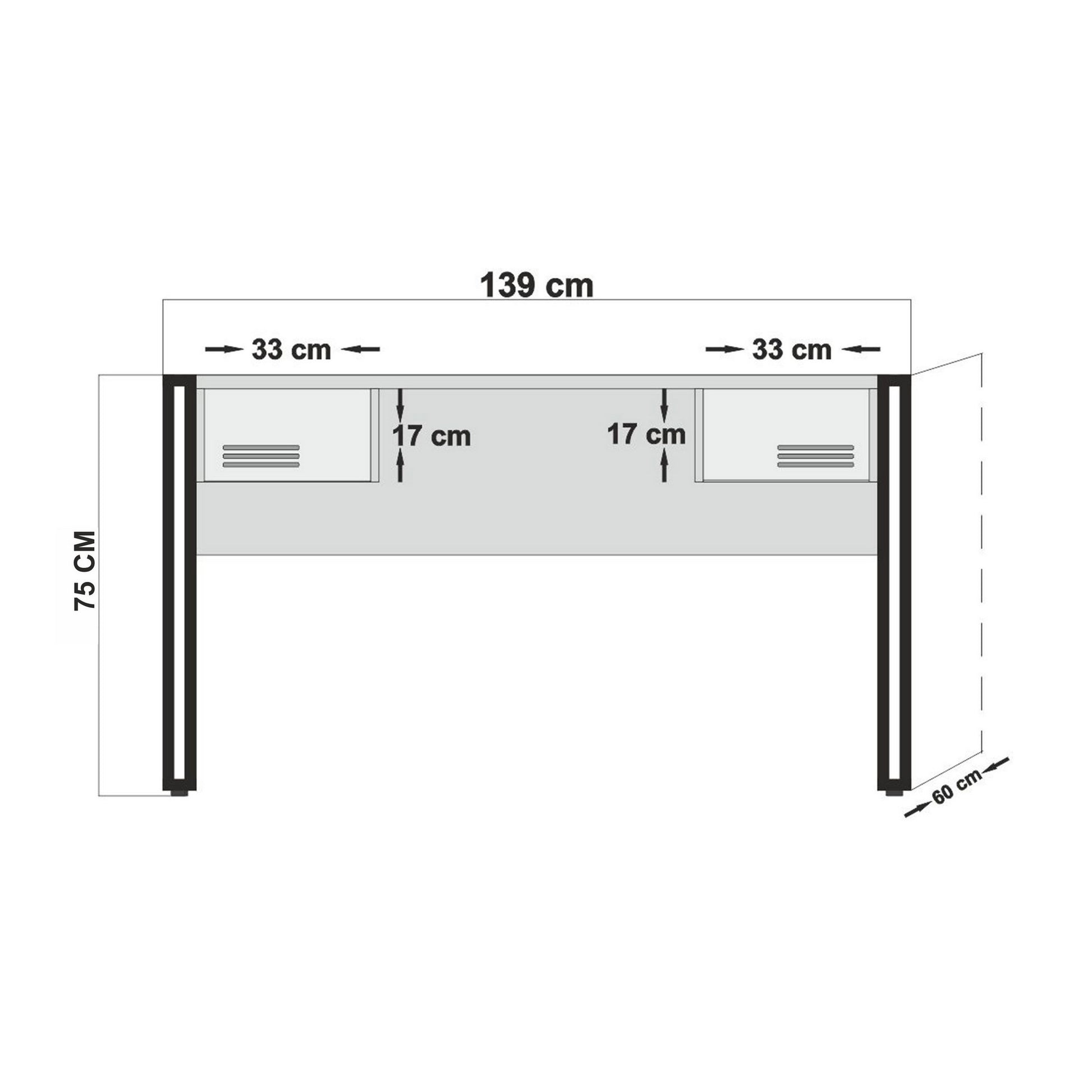 Secretária de Estudo/Escritório Industrial – 139 x 75 x 60 cm – Pinho Atlântico e Preto – 100% Melamina