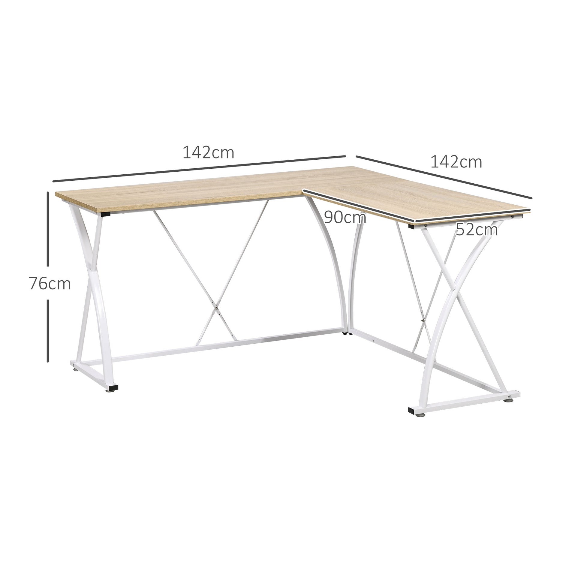 Secretária de Canto em Forma de L 142x142x76cm Cor de Madeira Natural