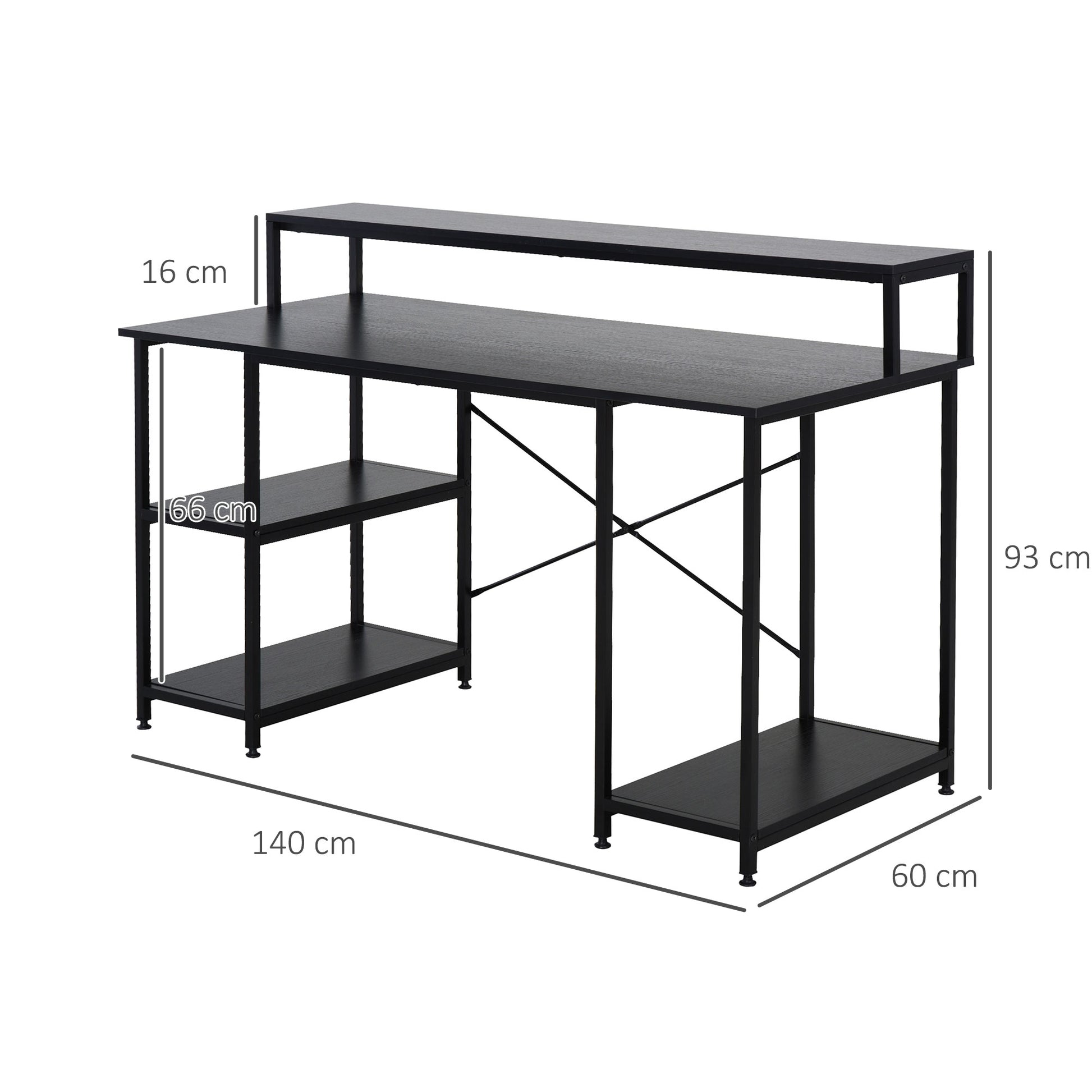 Secretária de Escritório com 3 Prateleiras 140x60x93 cm - Grão de Madeira Preto