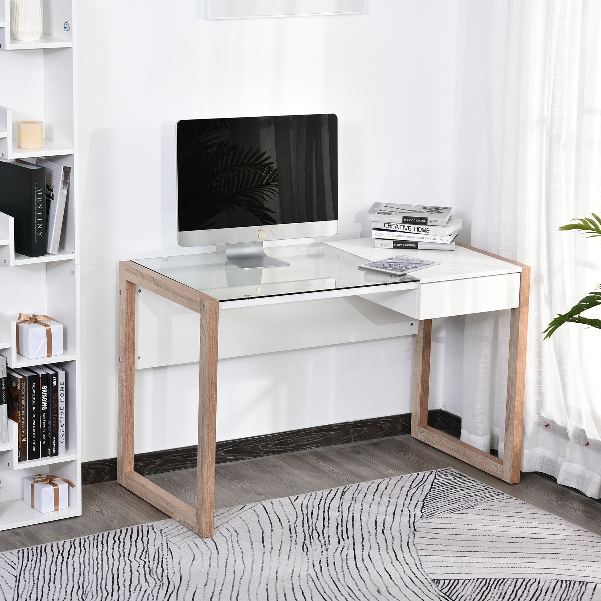 Trabalhe com conforto e estilo com esta secretária de escritório moderna e funcional. Aproveite a superfície de vidro espaçosa e a gaveta para manter tudo organizado e ao alcance das mãos. Adquira já a sua!
