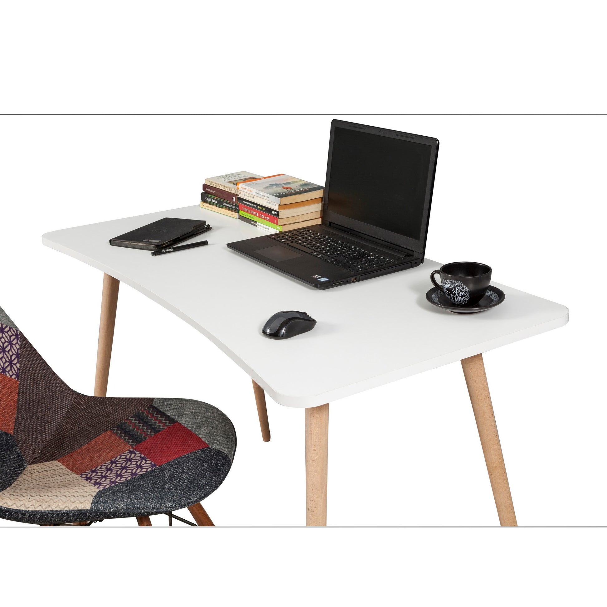A nossa secretária de estudo é fabricada com painéis de partículas 100% revestidos a melamina, garantindo durabilidade e longevidade. A espessura de 18 mm confere-lhe robustez, tornando-a perfeita para uma utilização intensiva. As elegantes pernas de madeira não só proporcionam estabilidade, como também dão um toque de sofisticação à sua área de estudo.