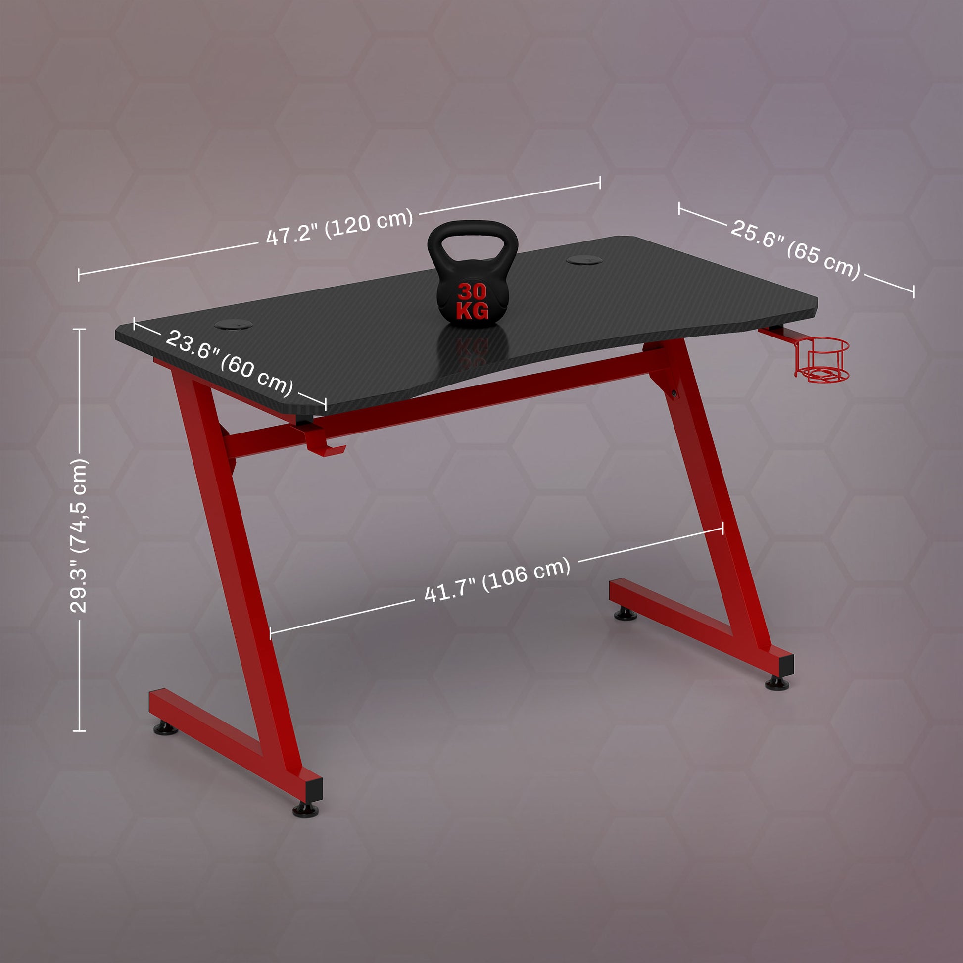 - Benefícios: Possui porta-copos lateral, gancho para fones de ouvido, estrutura de aço em forma de "Z" para estabilidade e tampas para cabos.