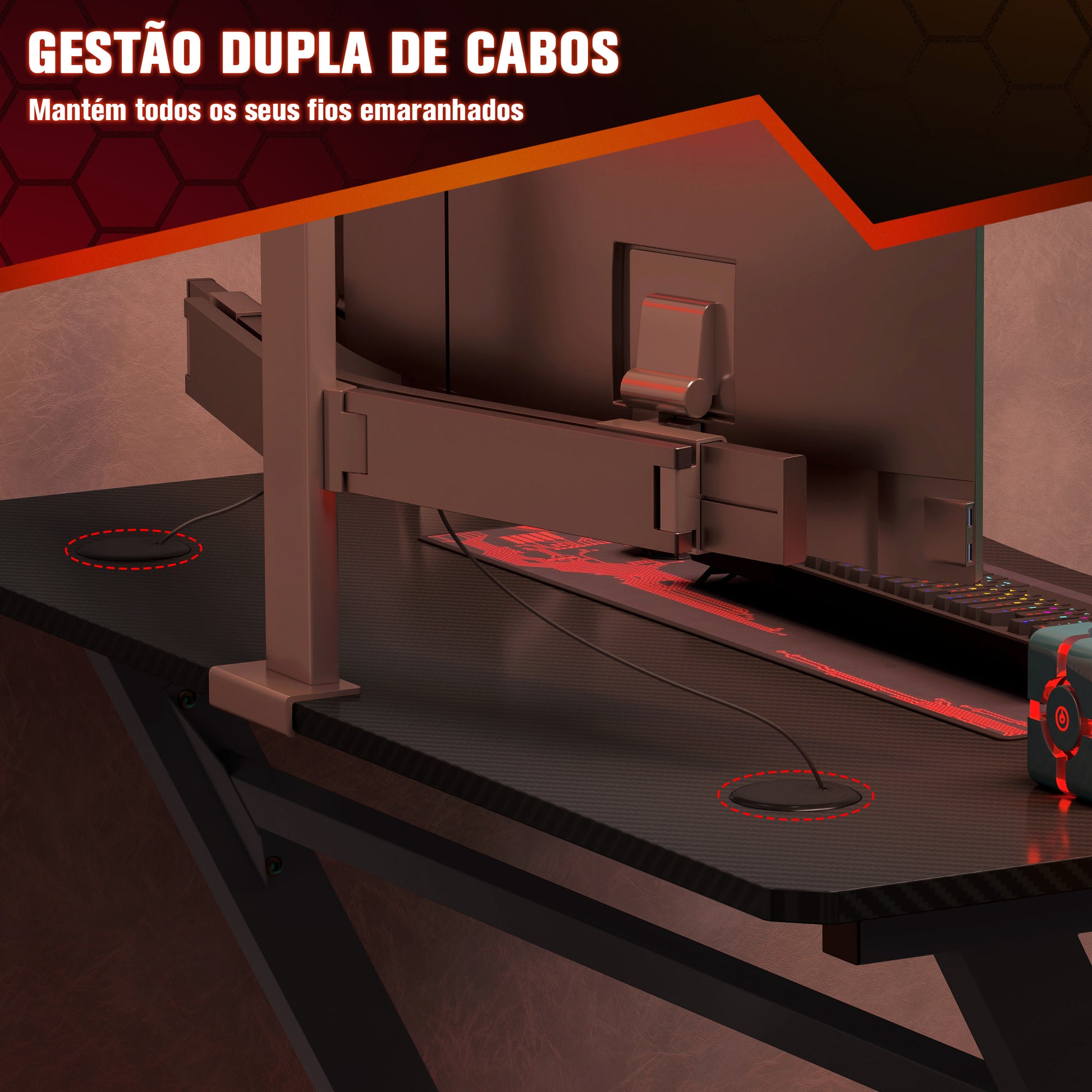 - Usos Recomendados: Ideal para gamers que procuram uma secretária espaçosa, estável e funcional para otimizar a sua experiência de jogo.