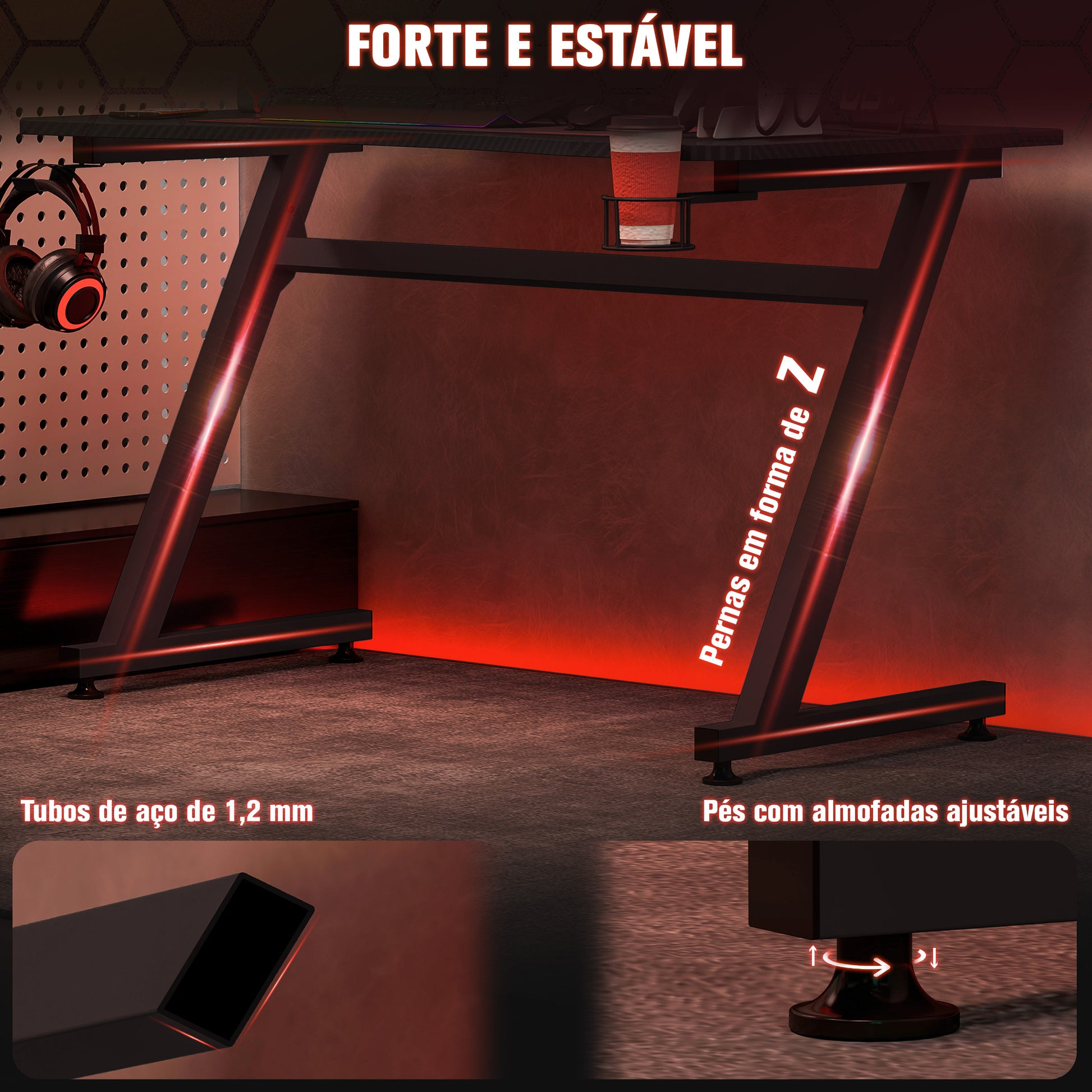A Secretária Gaming de 120x65x74,5cm é a escolha perfeita para gamers que valorizam design, conforto e funcionalidade em seus setups.