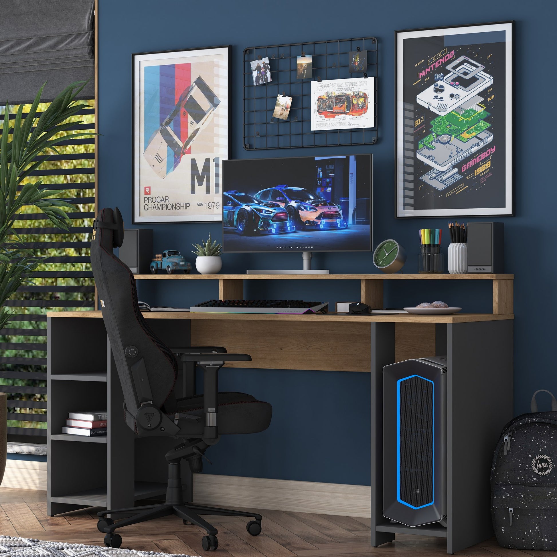 Com uma combinação deslumbrante de cores nogueira e antracite, a nossa secretária transpira elegância e sofisticação. O seu design elegante e moderno combina facilmente com qualquer decoração, dando um toque de classe ao seu espaço de estudo.