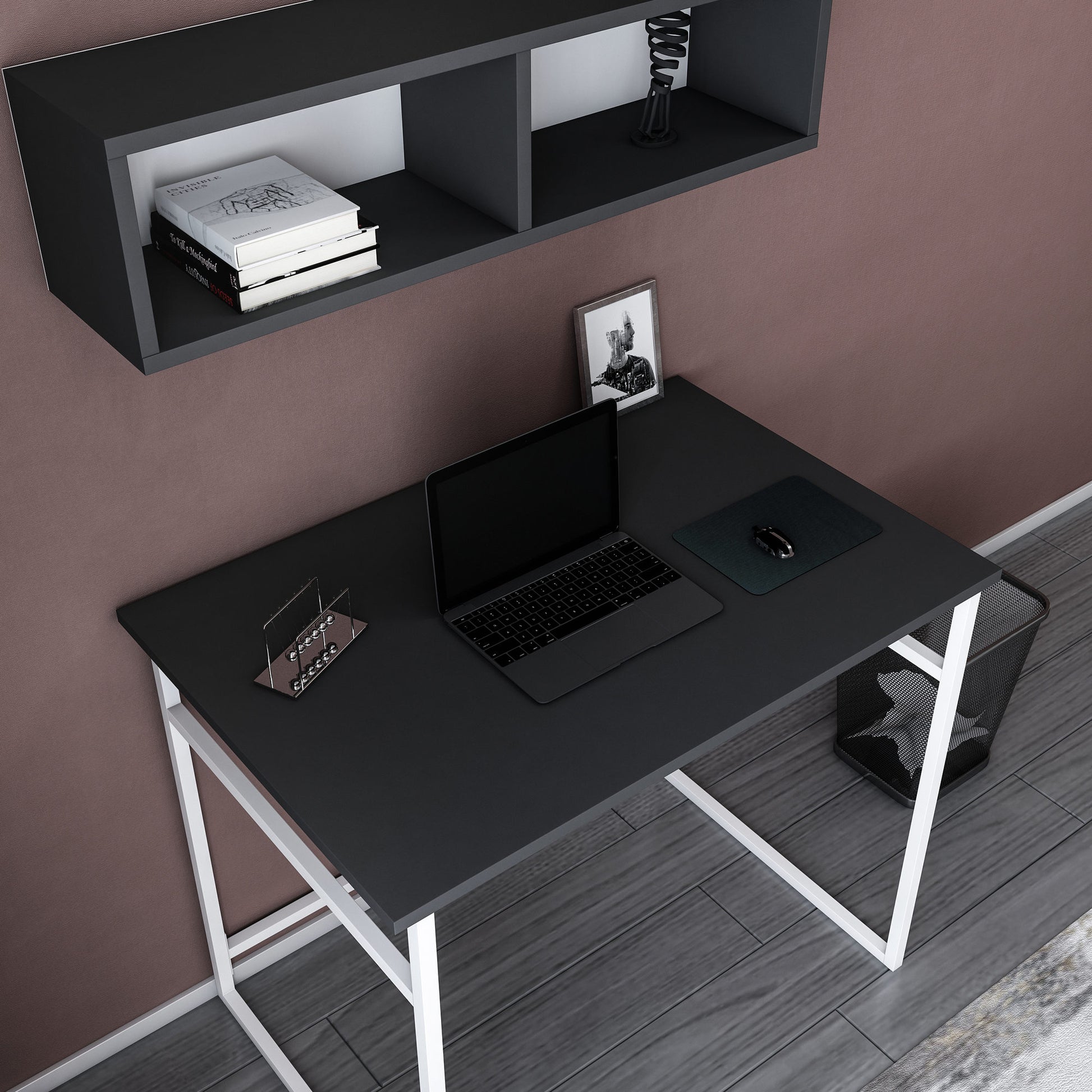 Com um conceito moderno e inovador, a nossa secretária de estudo combina na perfeição com qualquer decoração interior. A combinação das cores branco e antracite dá um toque de elegância e sofisticação ao seu espaço de estudo, criando um ambiente que inspira a criatividade e a concentração.