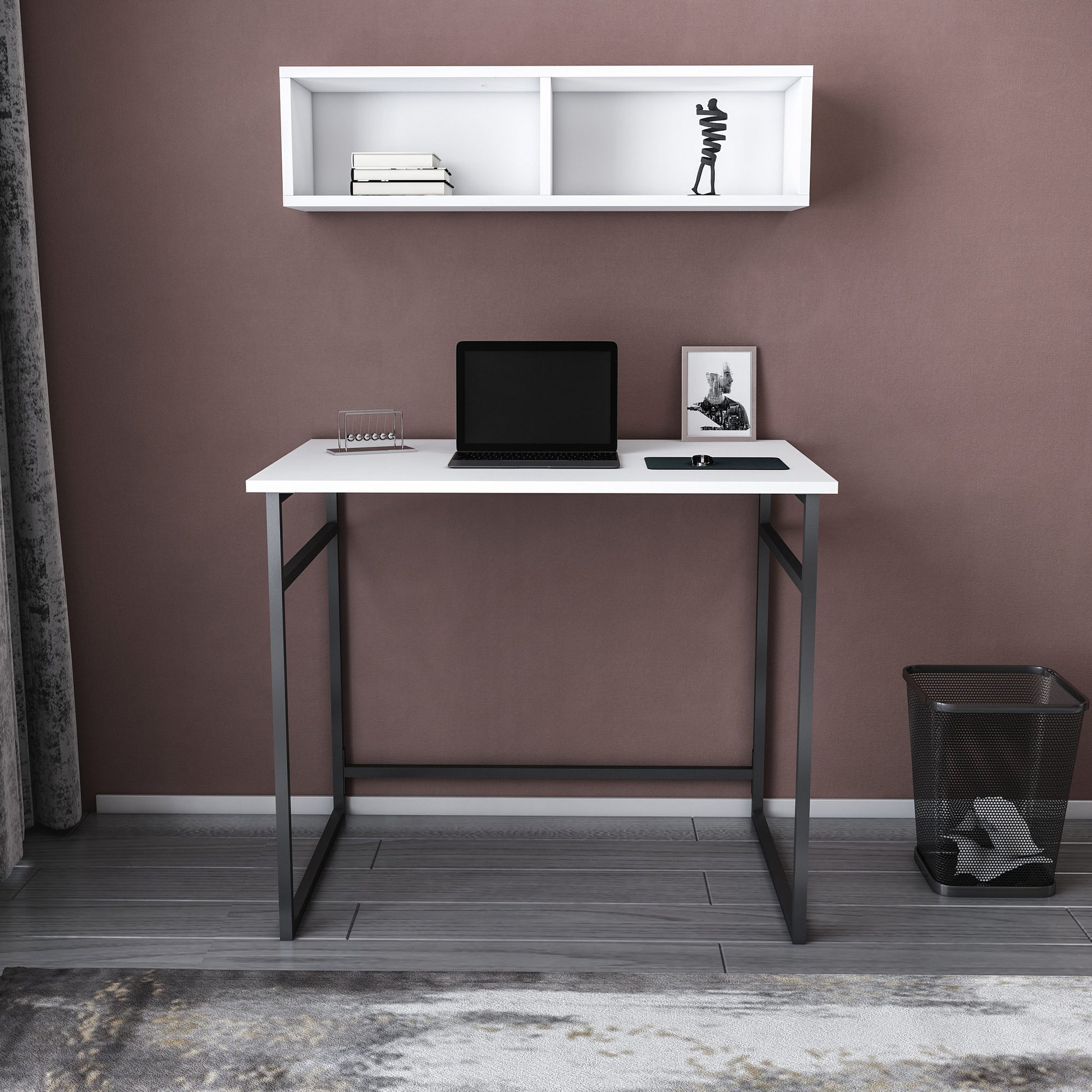 Secretária de Estudo/Escritório Moderna, Preta e Branca, 90 x 60 x 75 cm | Painel de Partículas 100% Revestido em Melamina, 18 mm de Espessura | Elegante e Funcional para Uso Doméstico ou Hoteleiro